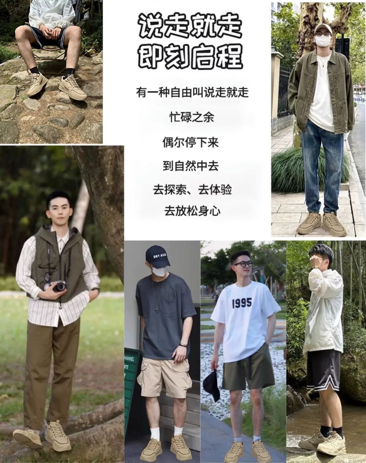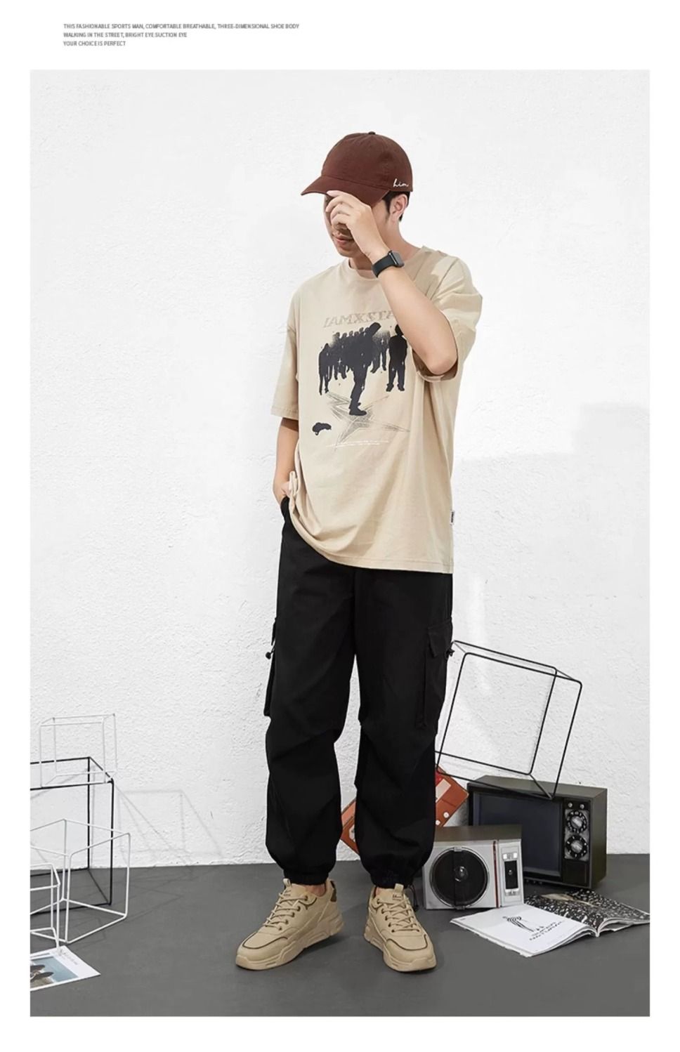 回力束脚裤子男春秋2025新款休闲宽松美式复古卡其色哈伦工装长裤