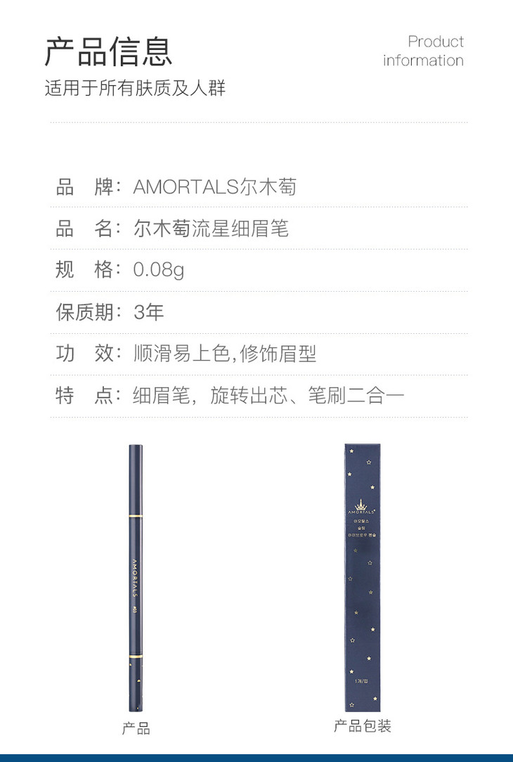 AMORTALS尔木萄流星细眉笔(03#自然棕)/1份(0.08g*2支)