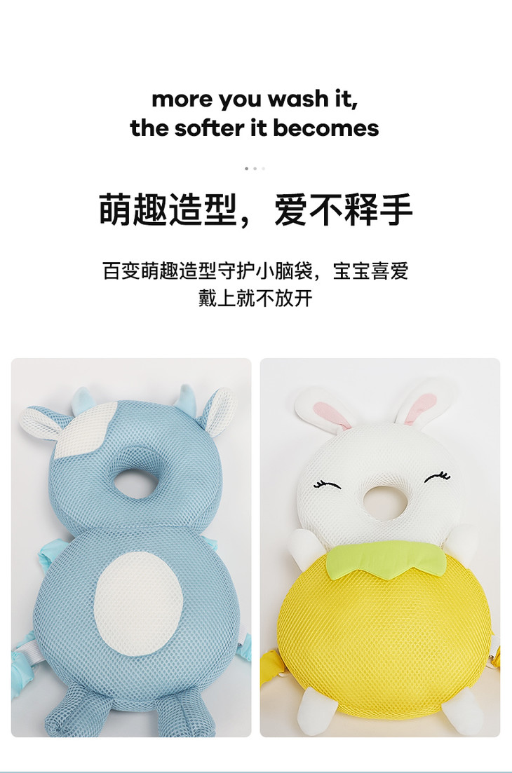 (K-4)儿童婴儿枕头宝宝学步走路防摔枕夏季透气防撞护头神器头部保护垫