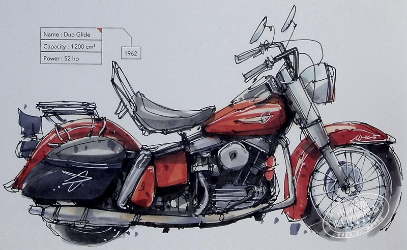 这本 Leporello(手风琴书)是为纪念标志性摩托车品牌哈雷戴维森创立 120 周年而出版的图画书。书中收录了阿尔伯特-基弗(又名社交网络上的 Housesketcher)绘制的约 30 款使该品牌闻名遐迩的车型。每幅画都是对实物的诠释,并附有该车型的主要特征:名称、生产年份、发动机排量和功率。这本书以其独特的图形和独特的形式,一定会让摩托车和哈雷车爱好者大饱眼福。