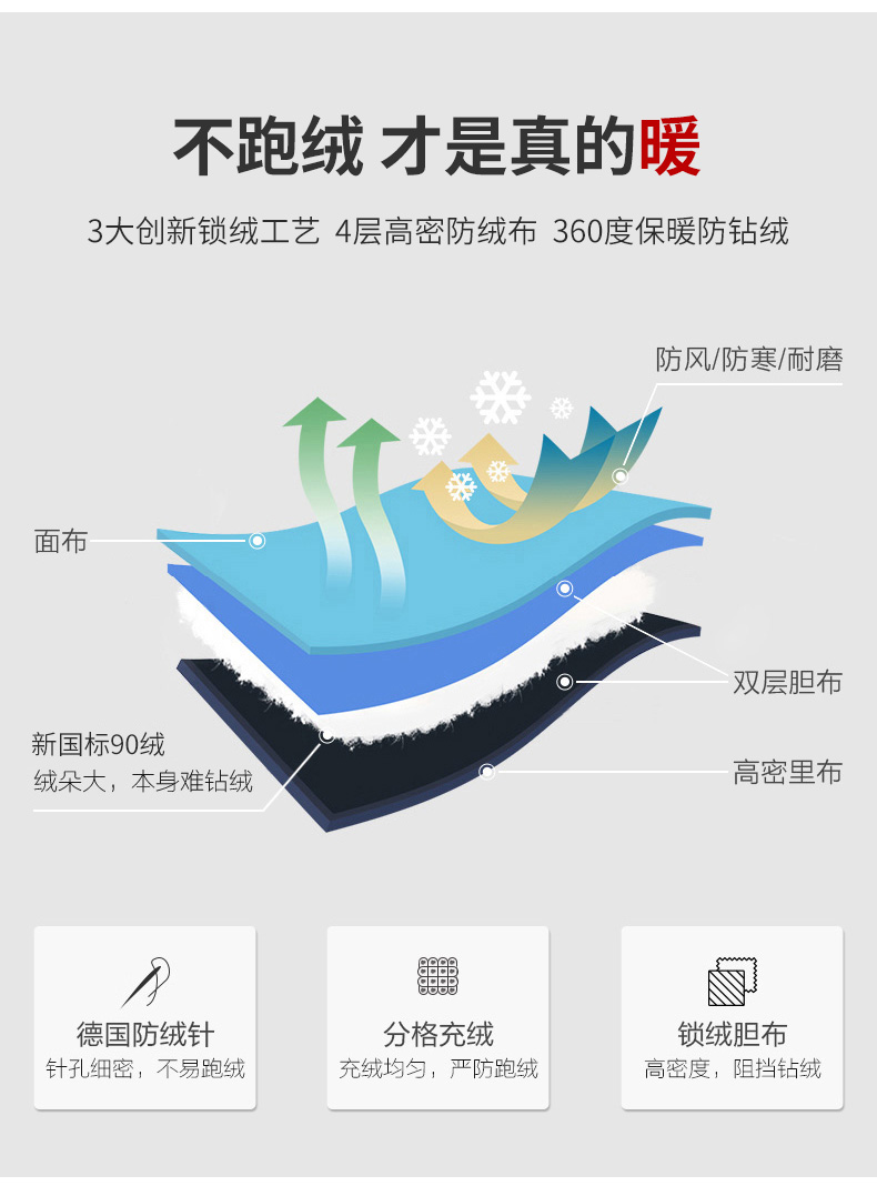 【充绒量】170-M / 100g、175-L / 104g、180-XL / 108g、185-2XL / 114g、190-3XL /120g