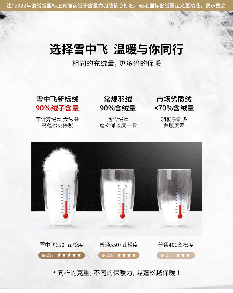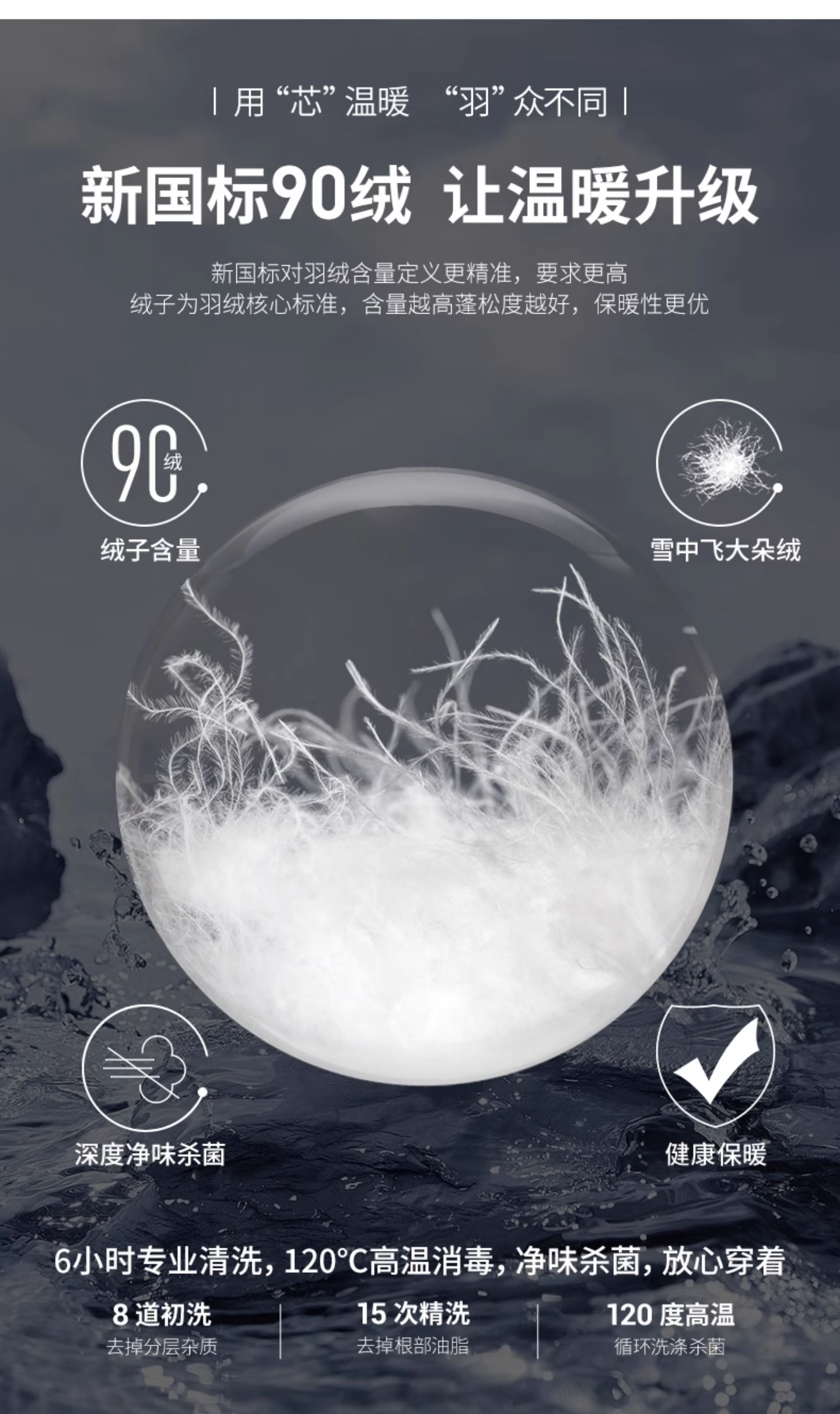 胆料: 100%聚酯纤维 (其他配料除外)、 填 充 物 : 鸭绒(绒子含量90% )(局部填充物:100%聚酯纤维)