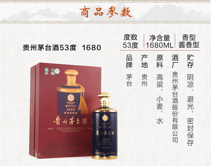 53度贵州茅台酒1680 1.68L (2020年老酒)单瓶