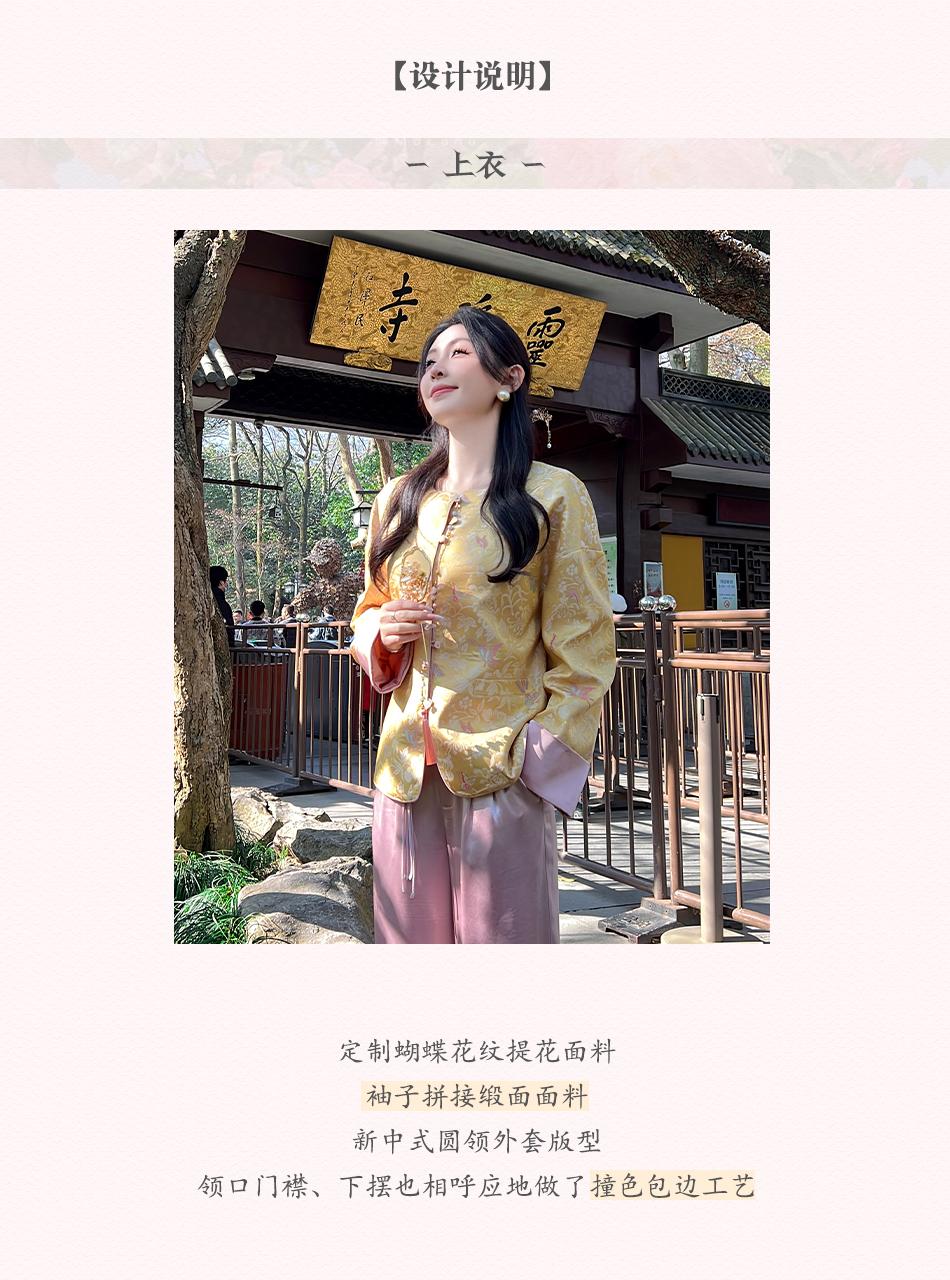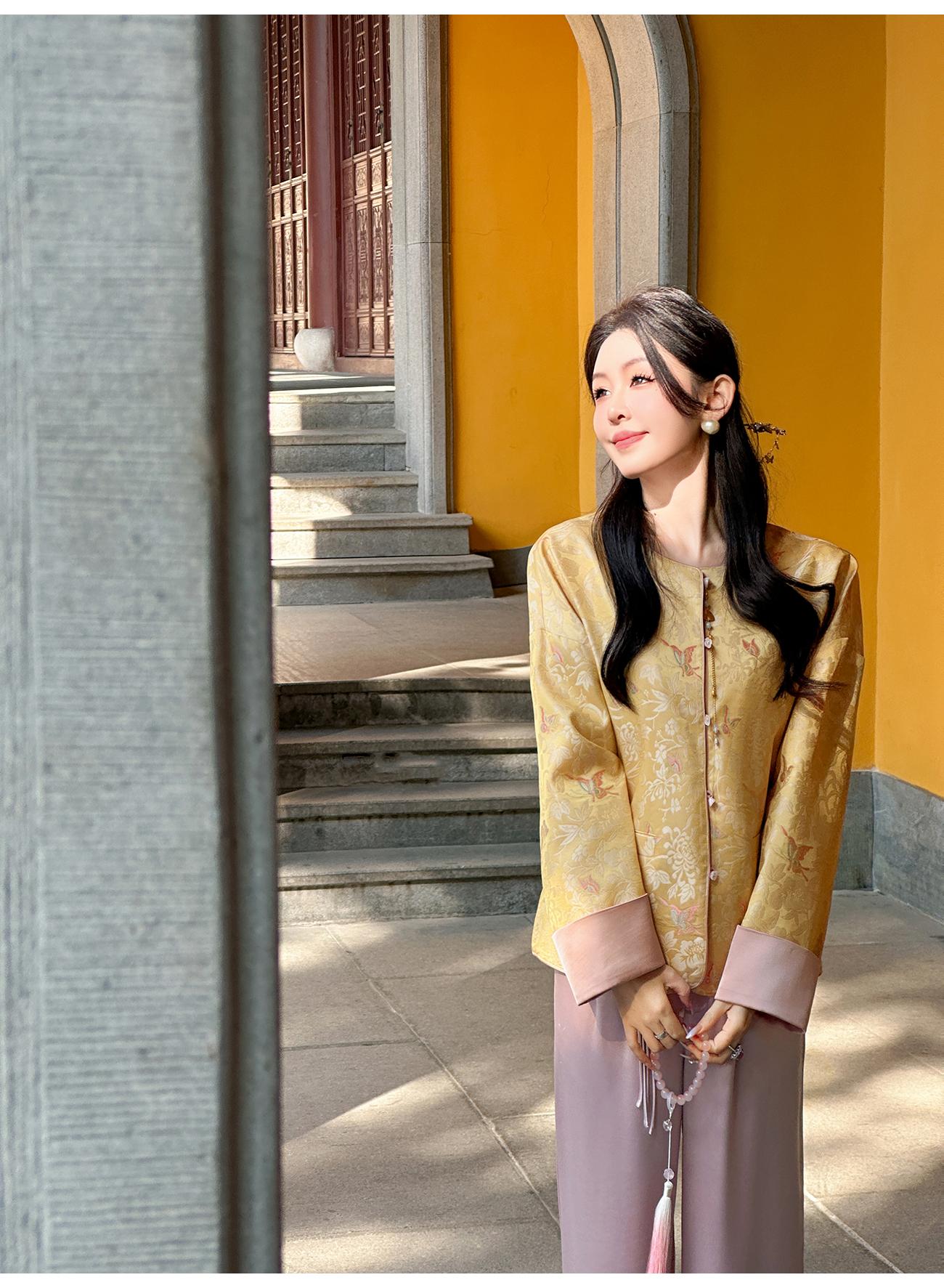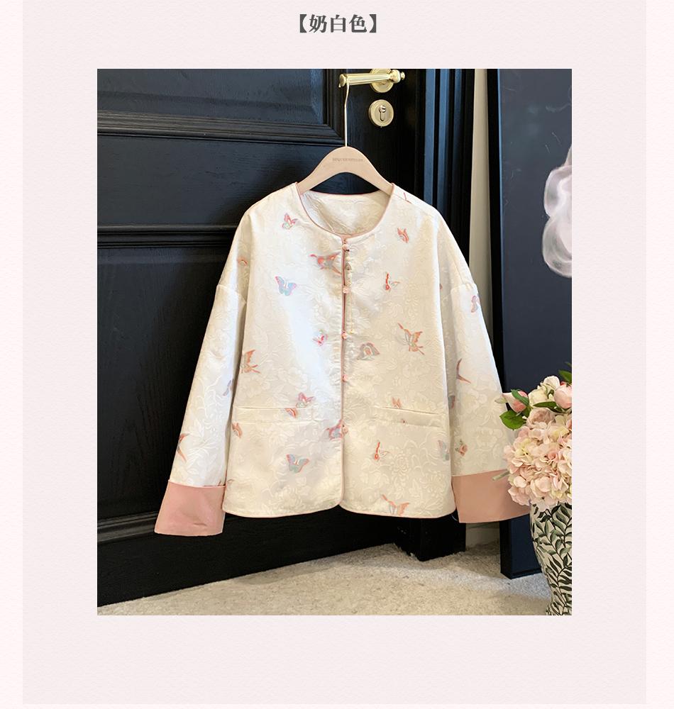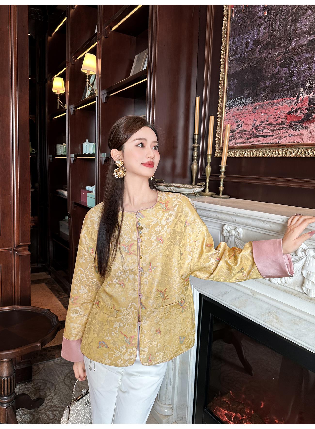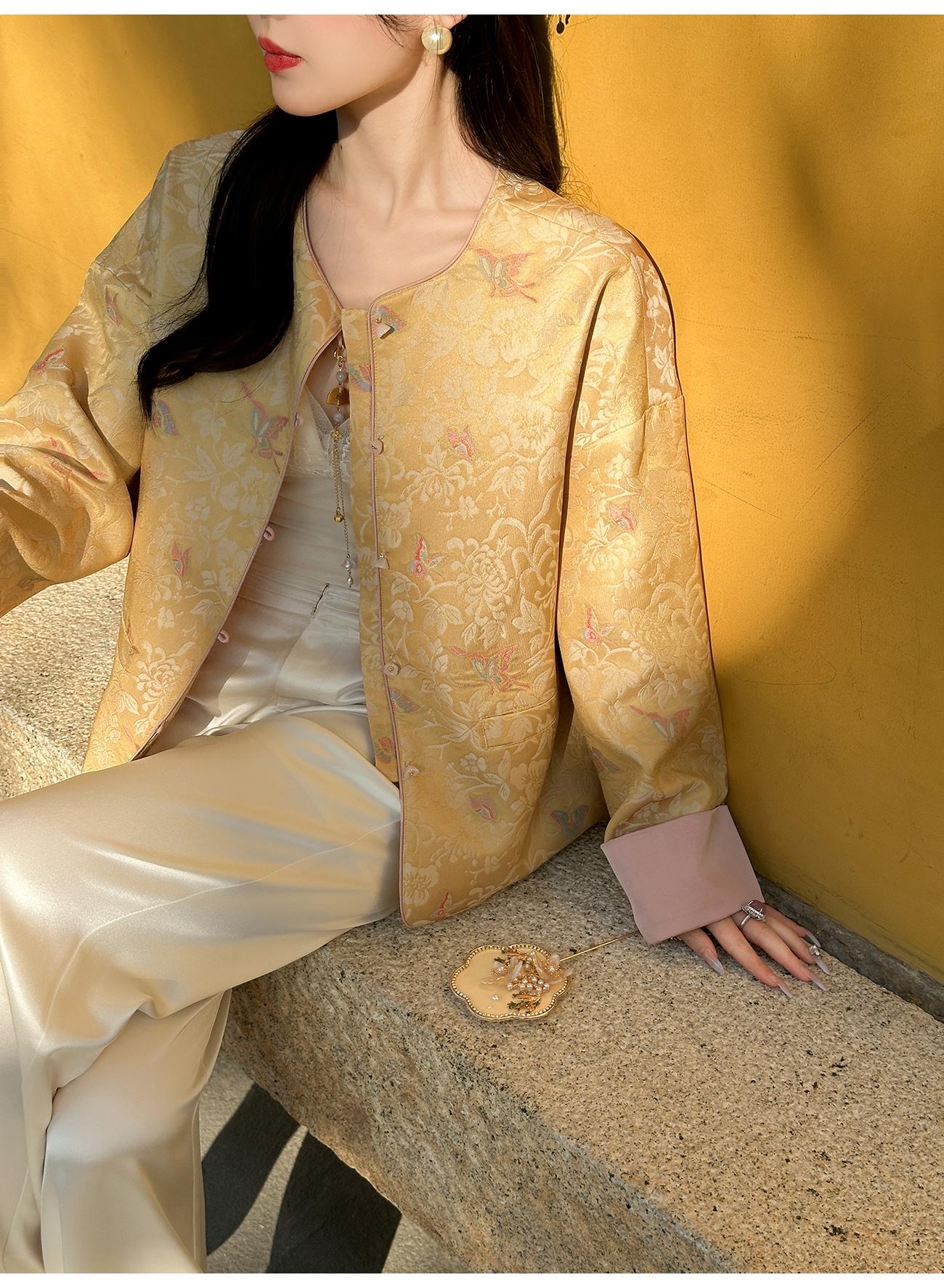 BeQueenStory【凤冠芳华】新中式蝴蝶花纹提花撞色国风上衣女外套