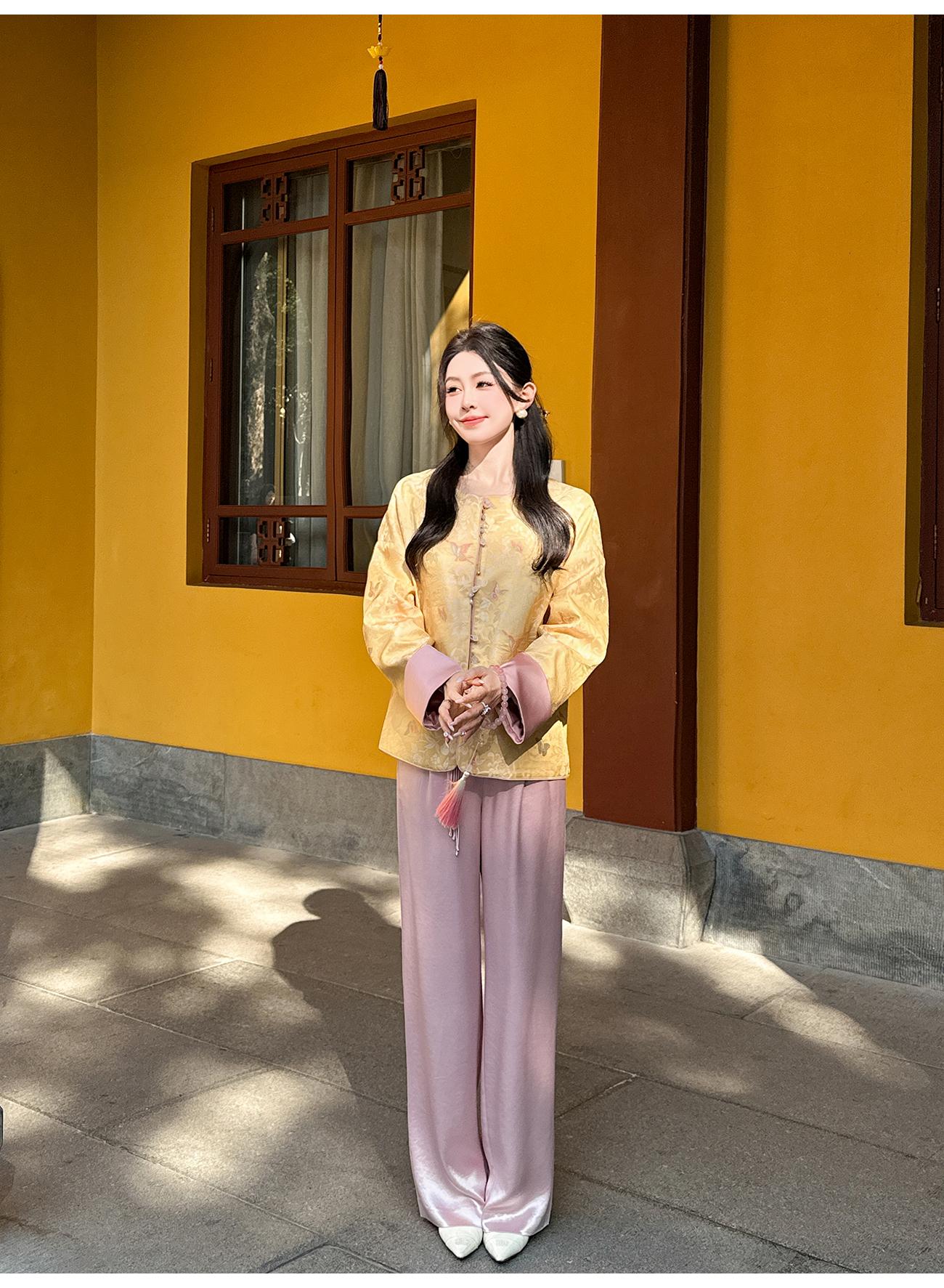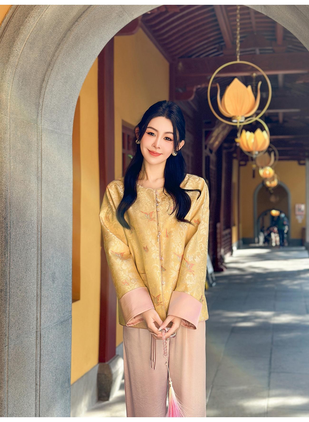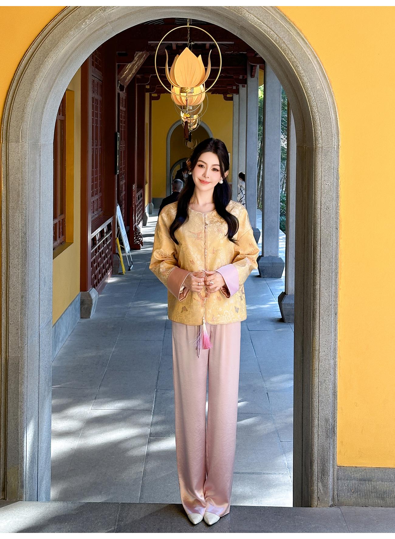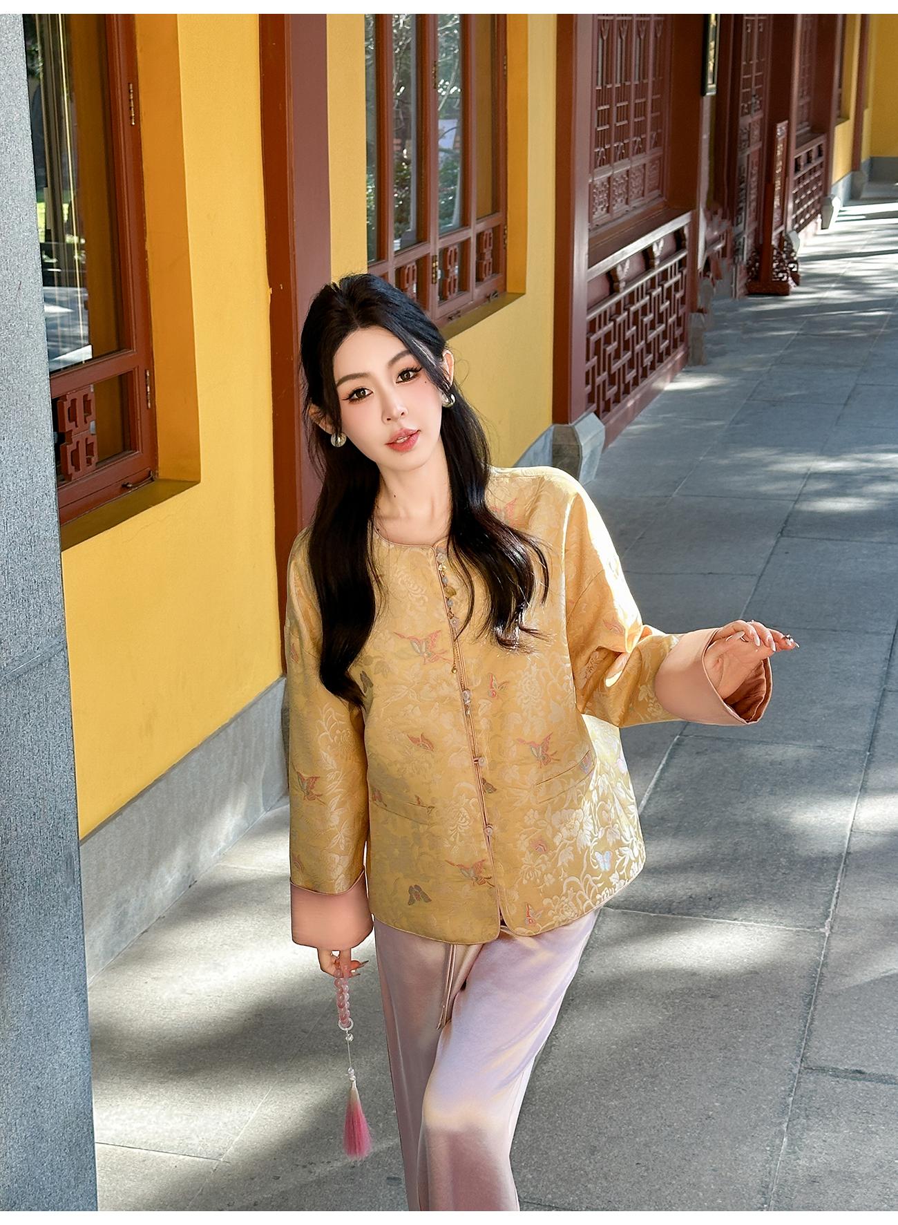 BeQueenStory【凤冠芳华】新中式蝴蝶花纹提花撞色国风上衣女外套