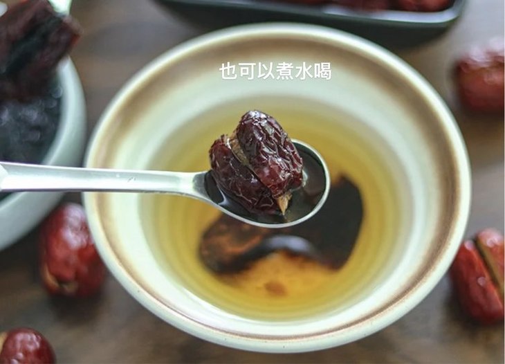 三蒸三晒的红枣不易上火不湿热,晒后的红枣蒸发了水分、甜度增高,口感很绵密,软糯糯的,很好吃