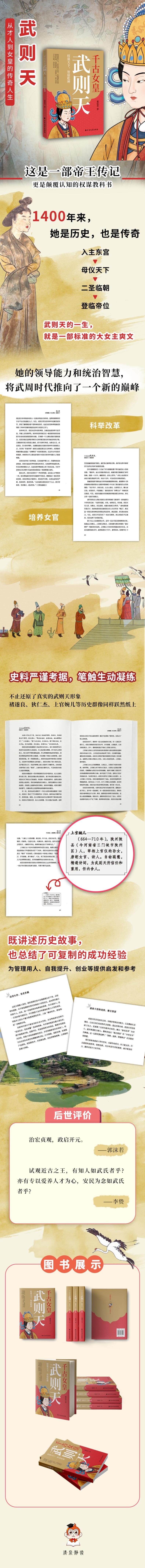 ☆一代女皇武则天,重新认识这位颇具传奇色彩的女帝王。 ☆从后宫斗法到前朝夺权,讲述武则天如何一步步走向皇权,创造属于自己的神话。 ☆史料详实,叙事精彩,重多历史人物粉墨登场,共同演绎出一段跌宕起伏的历史传奇。 ☆将武则天的故事与现代社会的竞争环境相结合,总结出实用的应对策略和成功法则。 ☆本书还探讨了权力、性别、历史变迁,引发你的深刻思考。 ☆图文并茂,阅读轻松,附武则天大事年表。