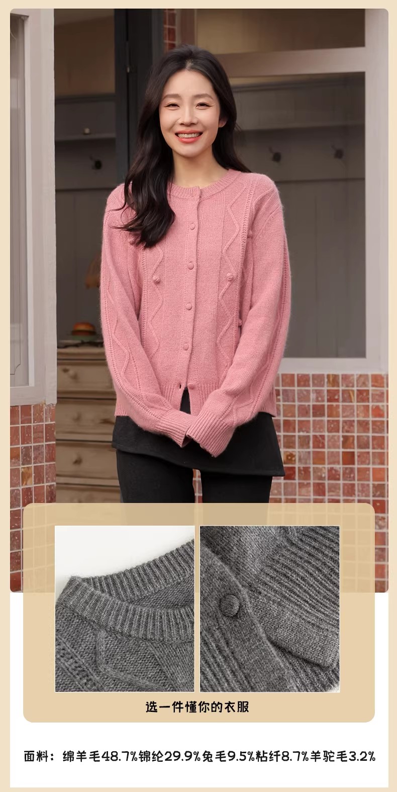 【门店同款】ENJOY冬季“暖冬知性”糖球圆领开衫针织 168897632