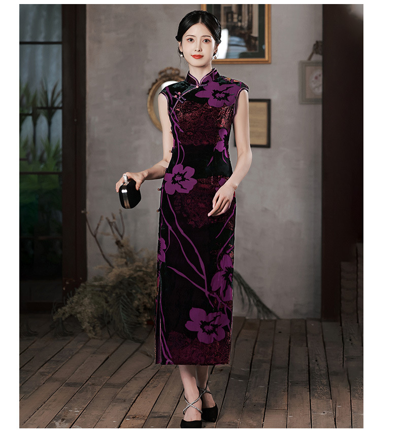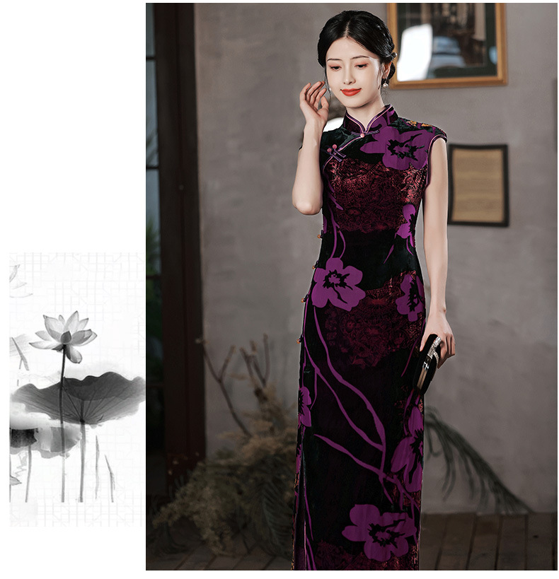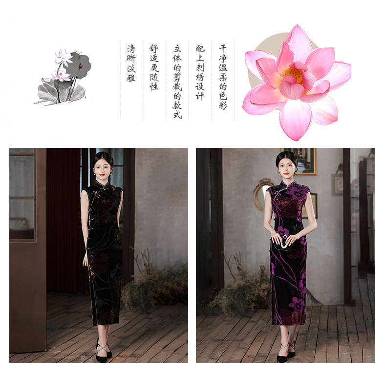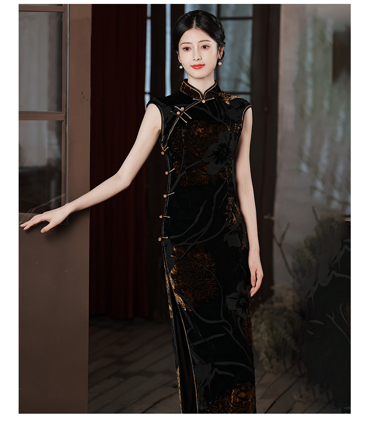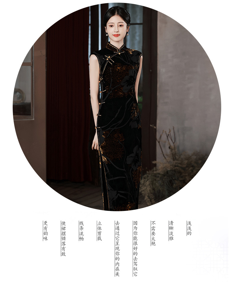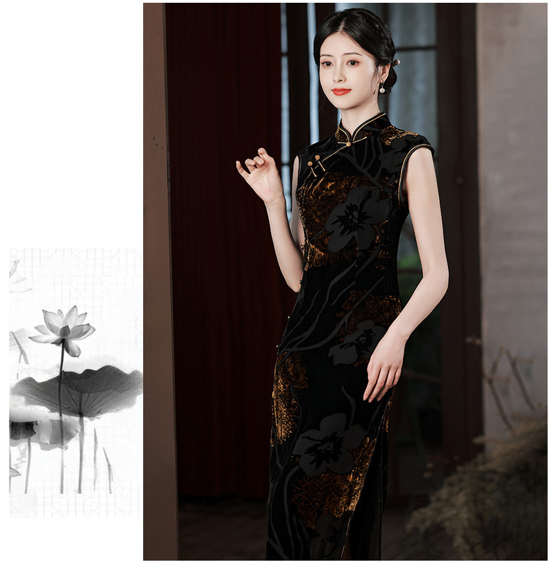 长款修身显瘦日常中国风优雅连衣裙改良版 GSJ-3073