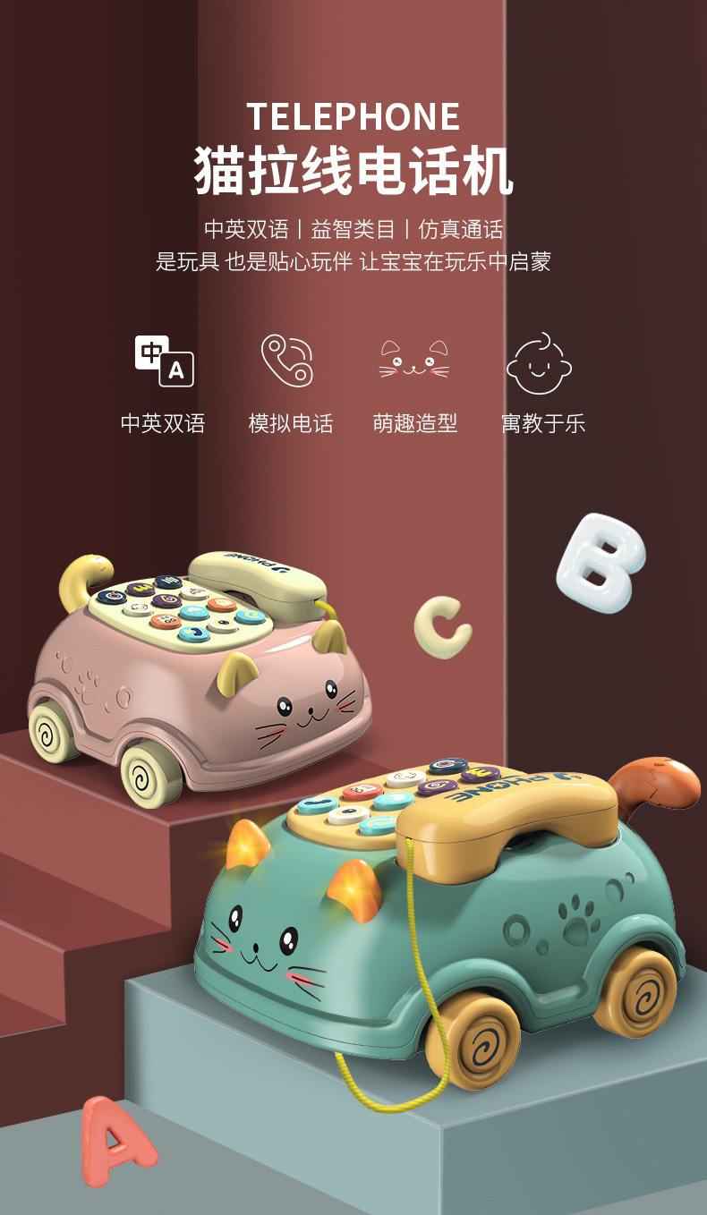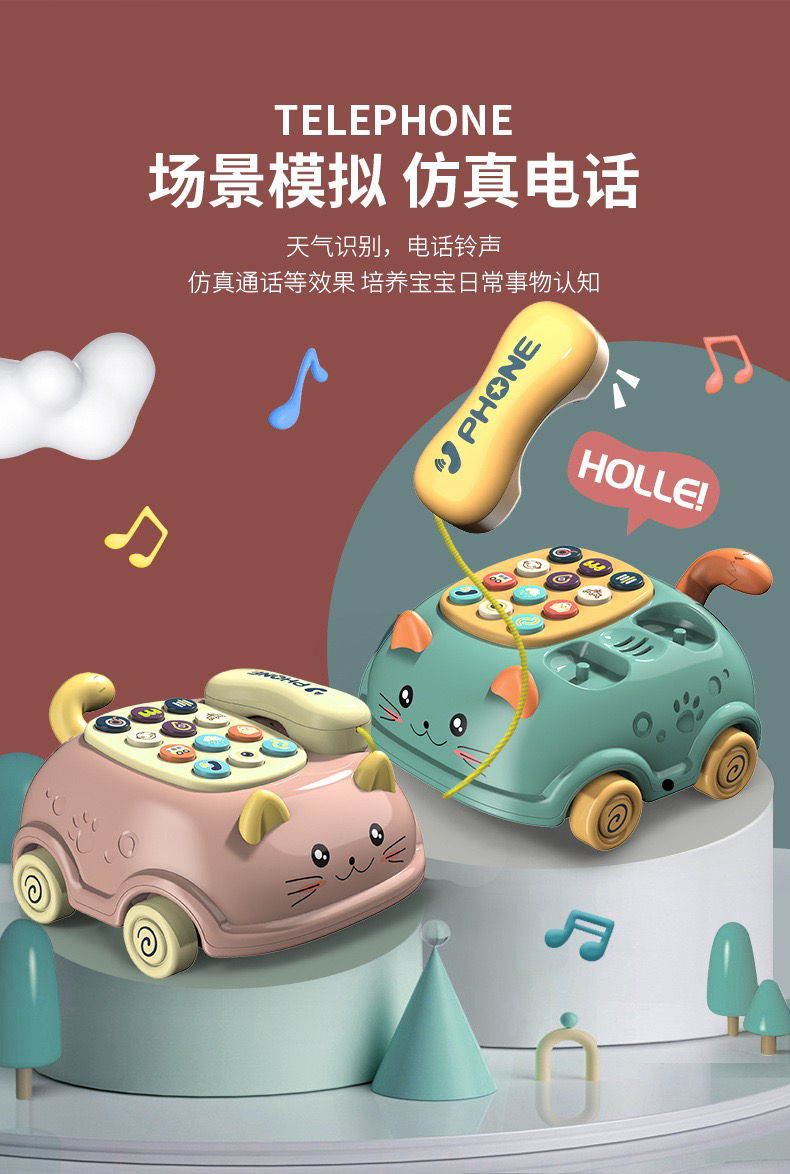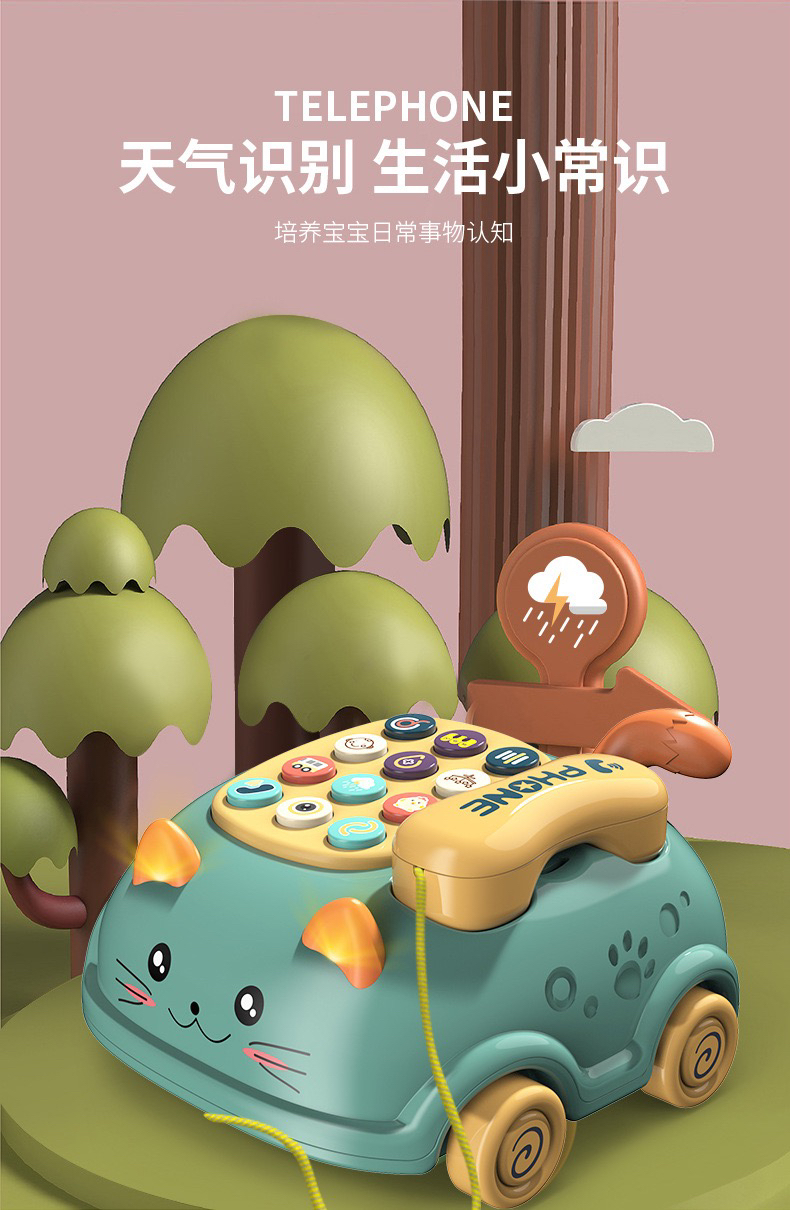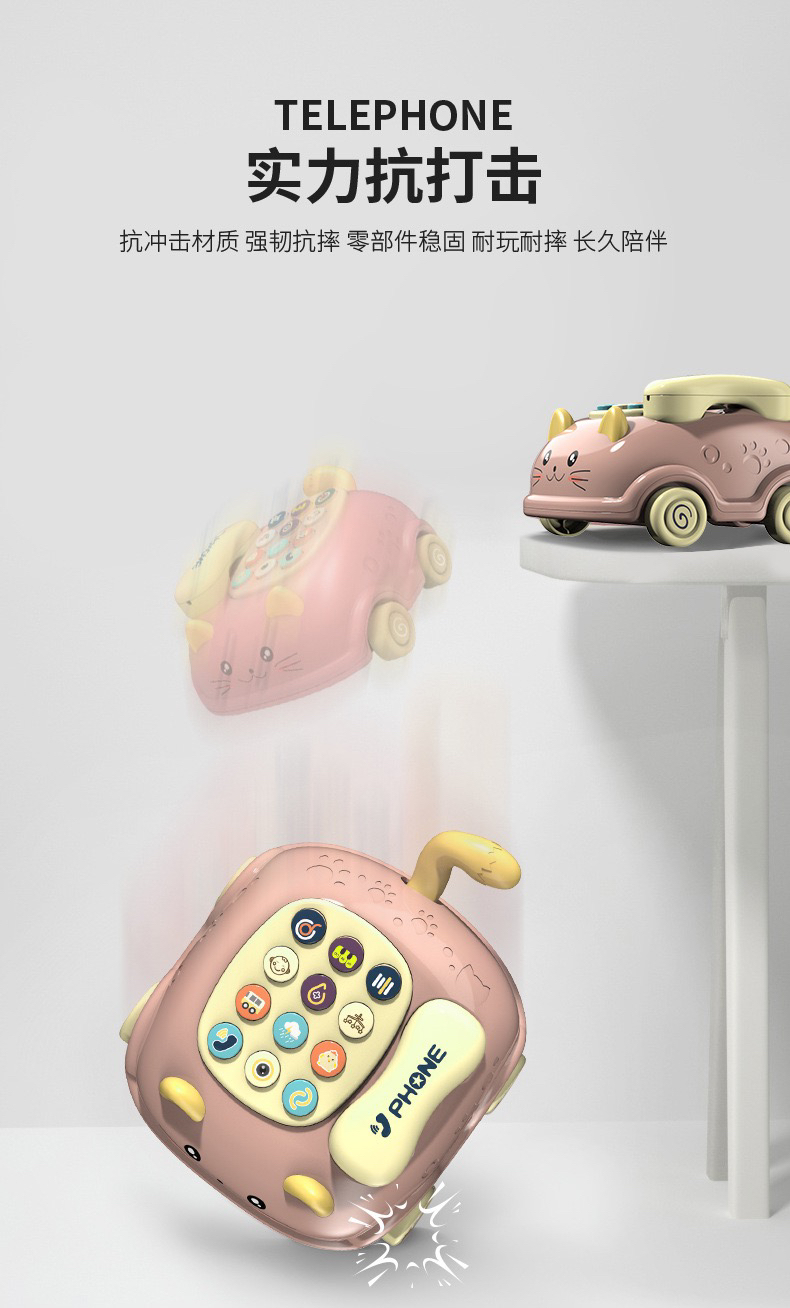 【博乐里】LQ-215 猫咪拉线电话车 婴幼儿多功能卡通小汽车 早教益智玩具