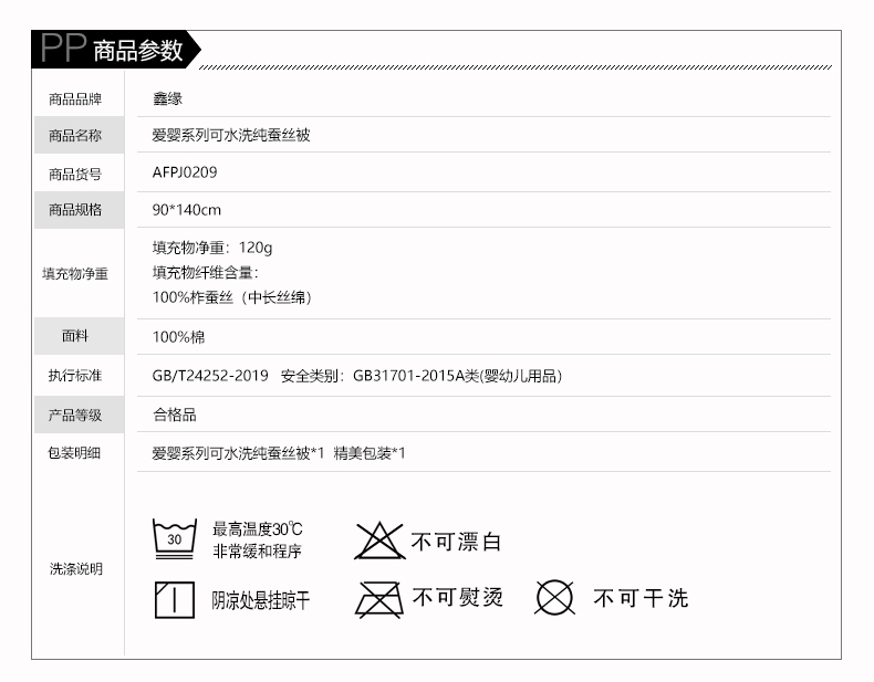 鑫缘 爱婴系列可水洗纯蚕丝被 AFPJ0209