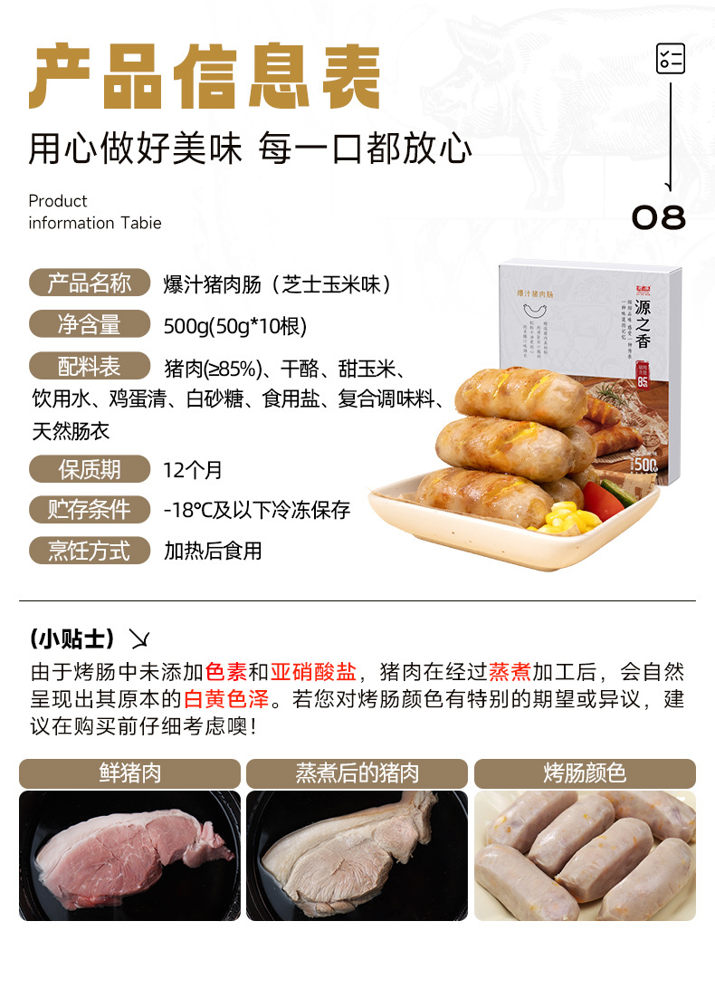 源之香 爆汁猪肉肠500g 芝士玉米味(共10根)