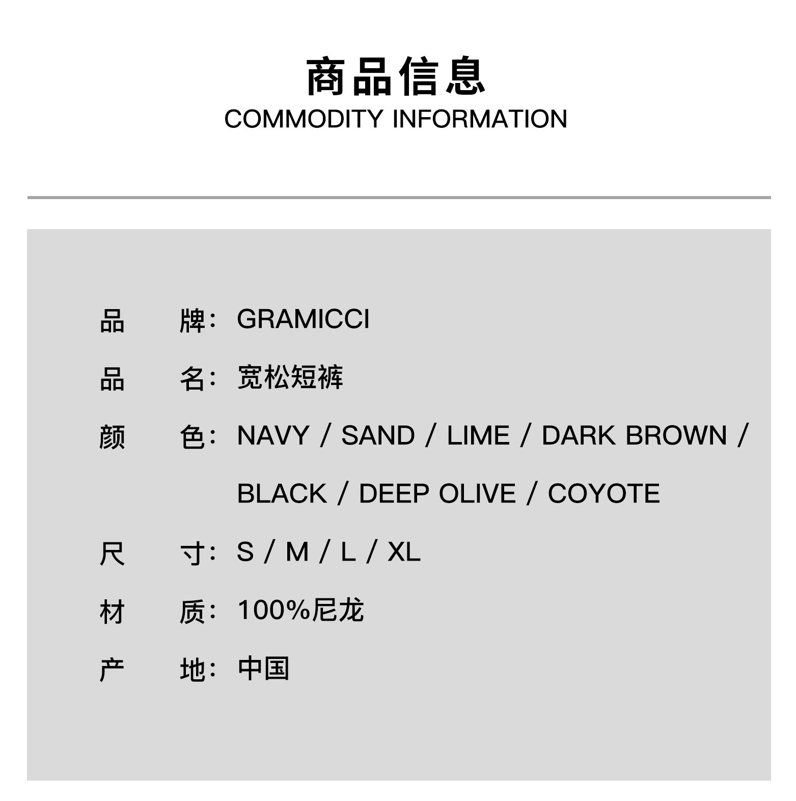 GRAMICCI NYLON LOOSE SHORT 机能尼龙休闲宽松短裤