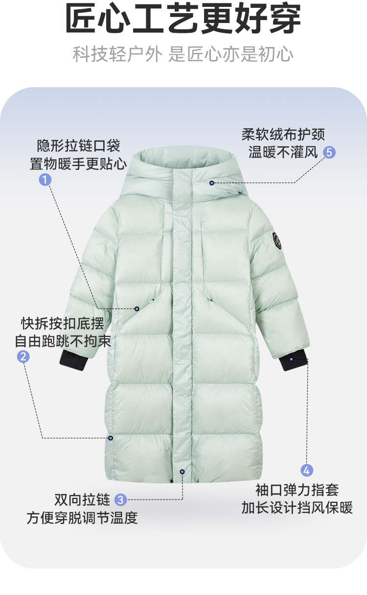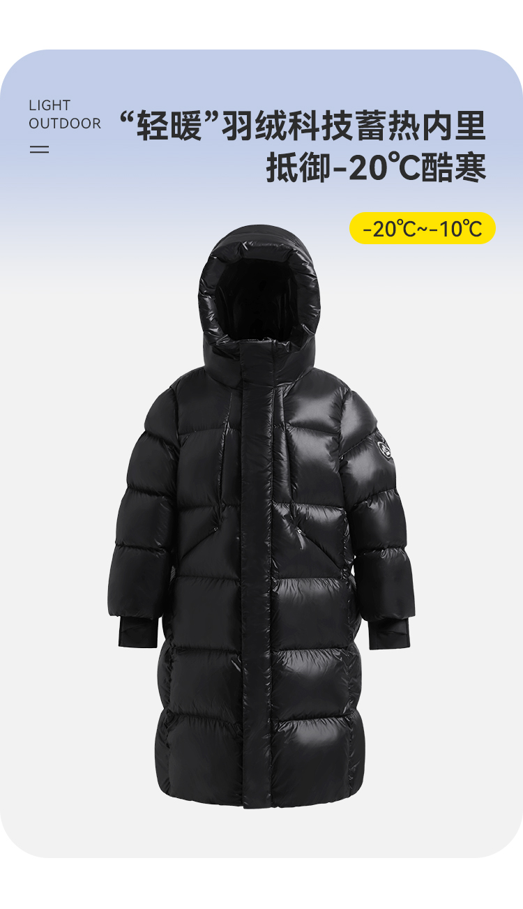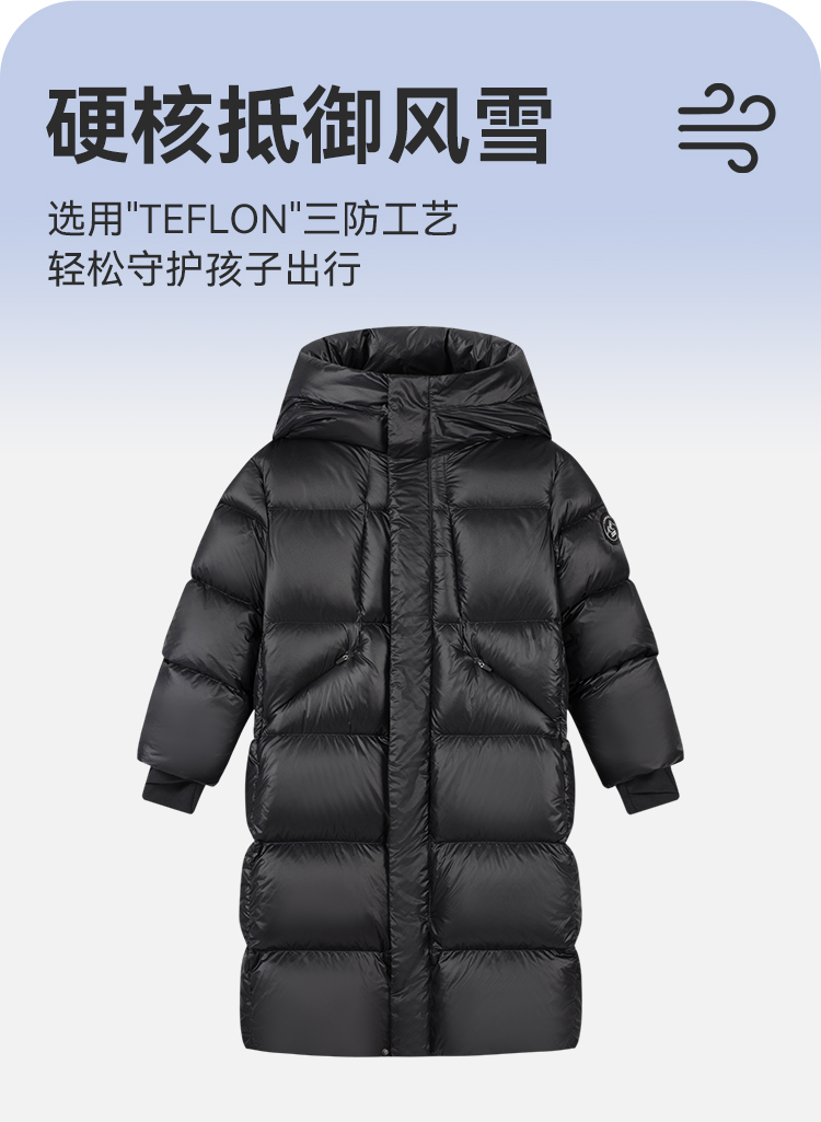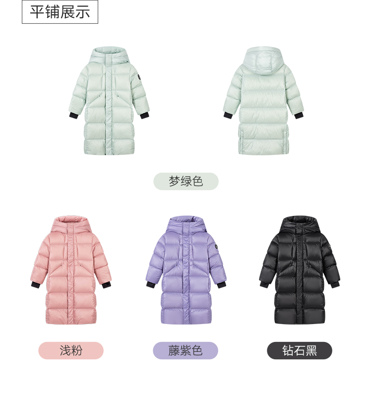 水孩儿童装冬季新款儿童加长款羽绒服男童克轻蓄热外套女童三防纯色鸭绒服