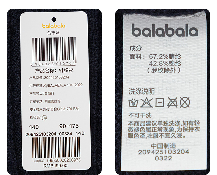 巴拉巴拉balaOne童装儿童毛衫男童女童2025新款冬装毛衣亲子装潮
