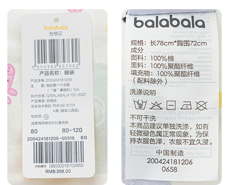 【小猪佩奇IP】巴拉巴拉婴儿睡袋宝宝睡衣豆豆绒保暖可拆卸袖子萌