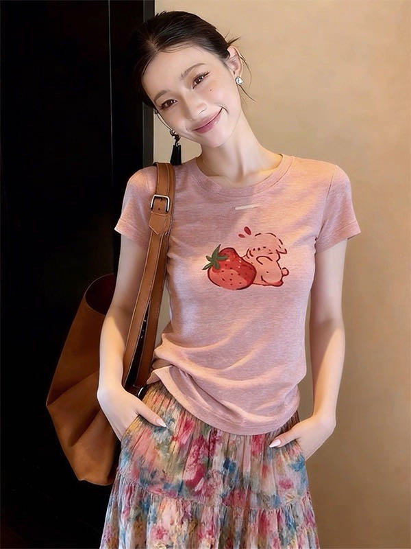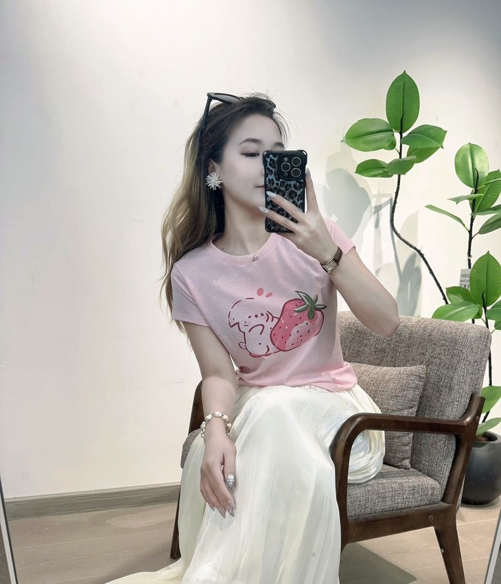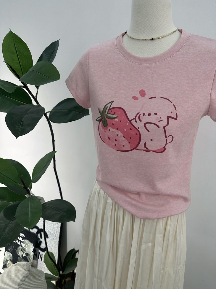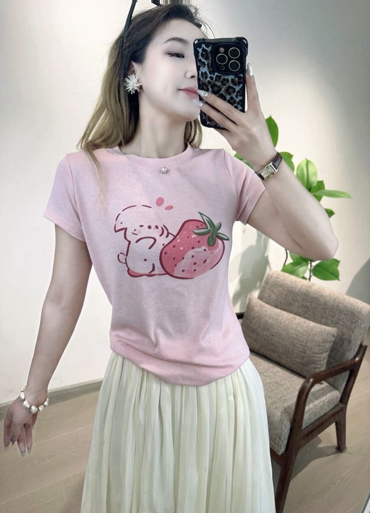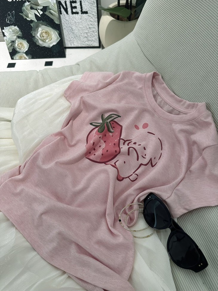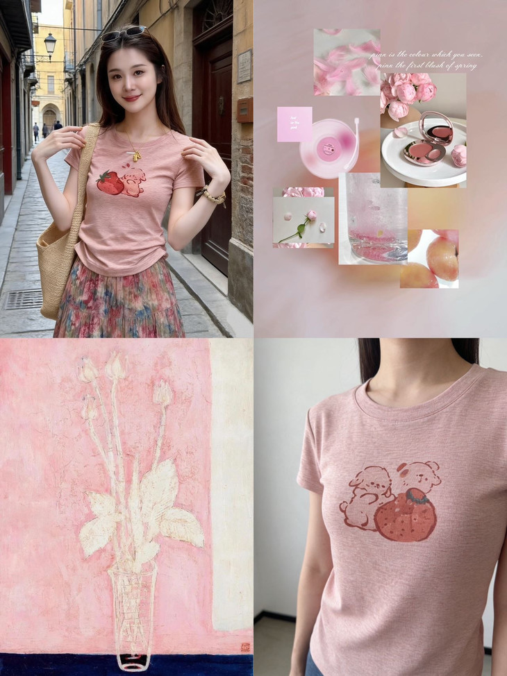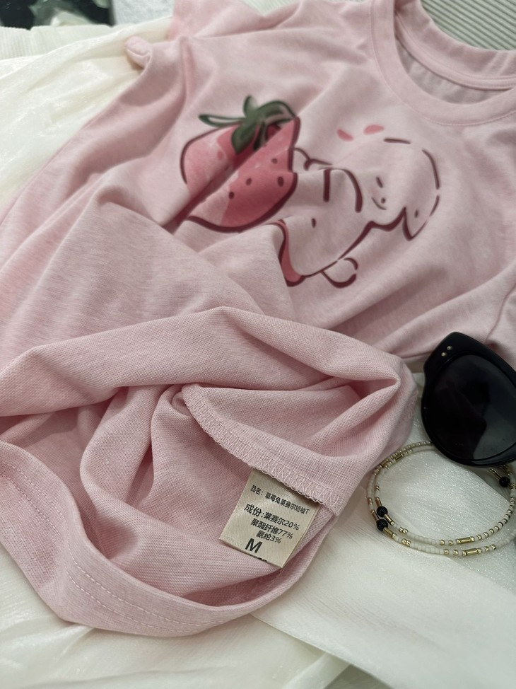 🥰外贸订单❗️显白到发光❗️【草莓免莱赛尔短T】,二十几种彩纱混织💗贴肤自带珍珠母贝般的光晕!145微胖姐妹穿它直接“瘦”出松弛感!