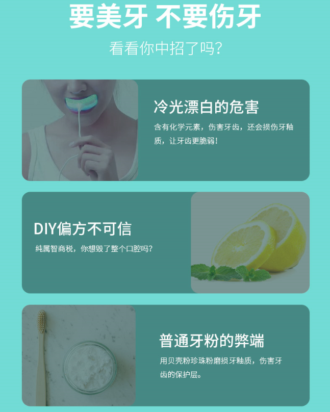 4、不含腐蚀性、不含增白剂、不含人工色素,不含糖分,对于牙齿敏感的人也非常友好,孕妇儿童都能使用。