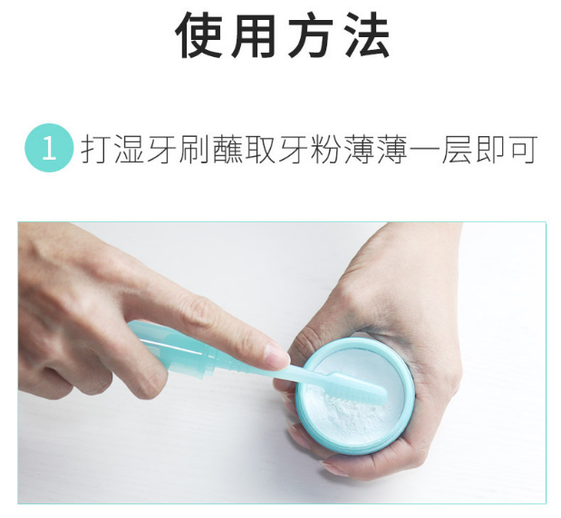 【使用方法】只要打湿牙刷,甩至不滴水,蘸取适量牙粉,正常刷牙2分钟左右,可以直接替代牙膏使用,别看小小的一罐,可以使用1~1.5个月哦