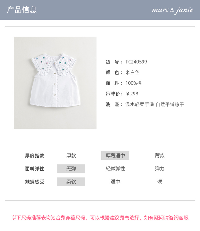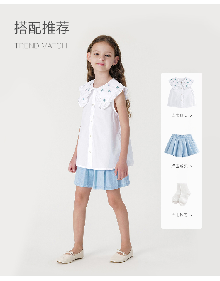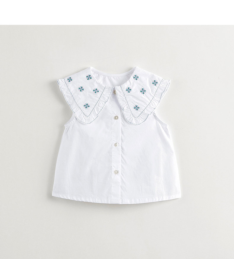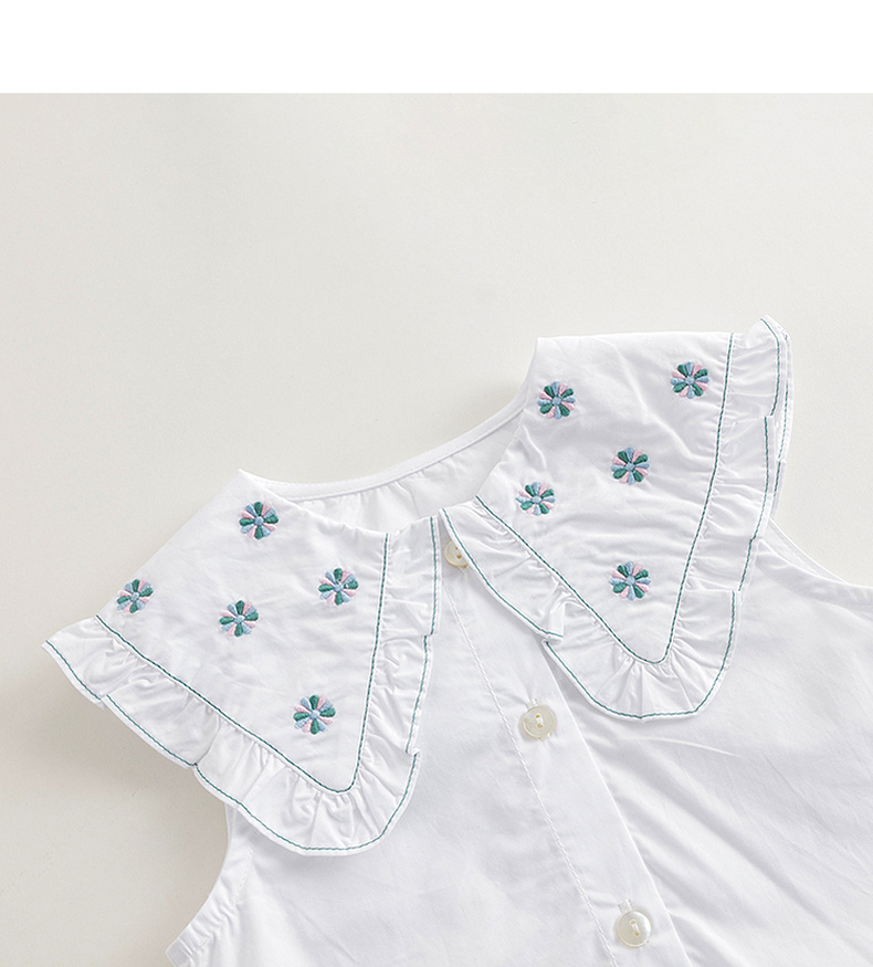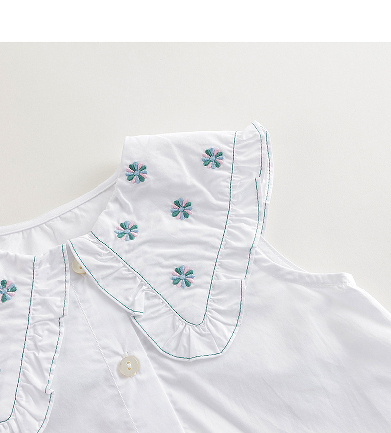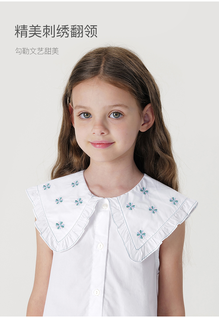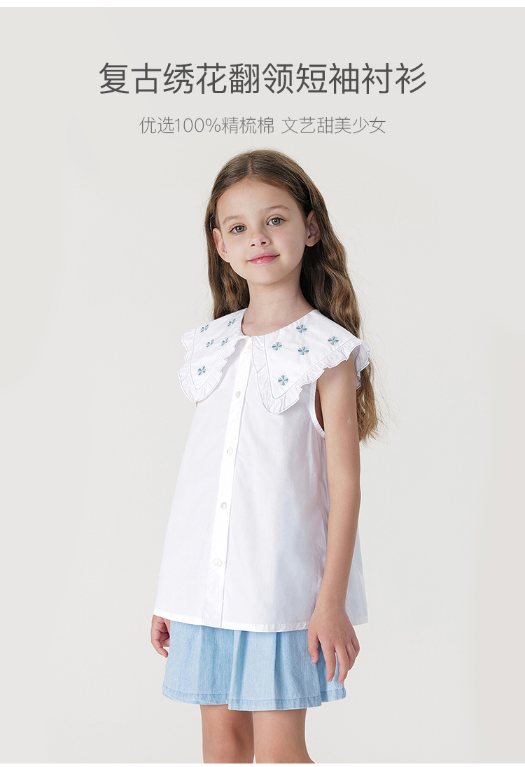 马克珍妮2024年夏装新款女童复古绣花翻领短袖衬衫240599