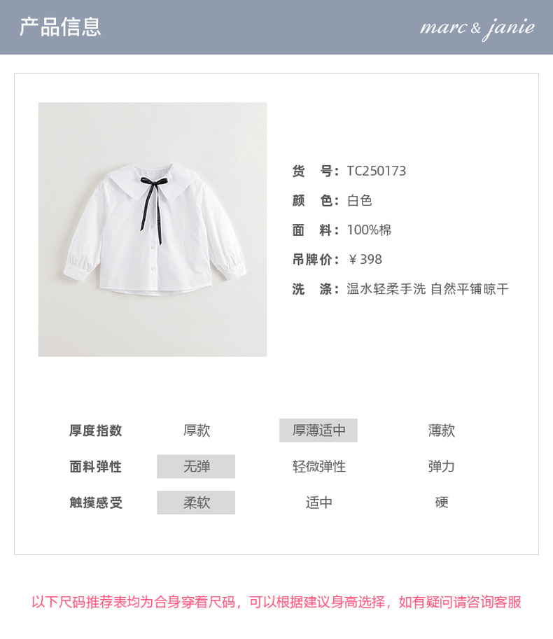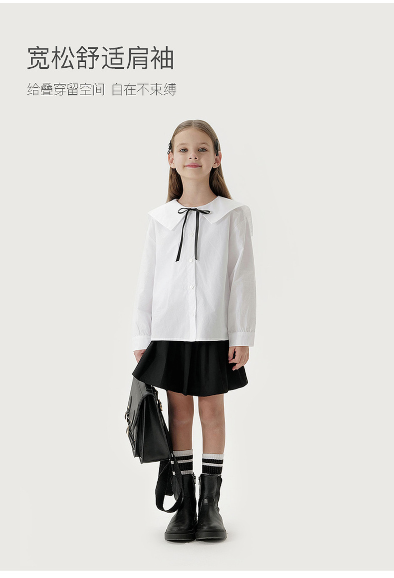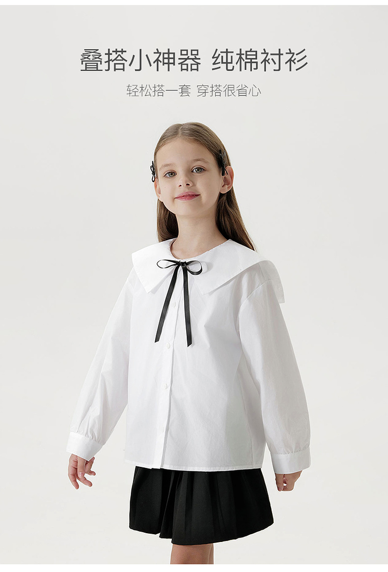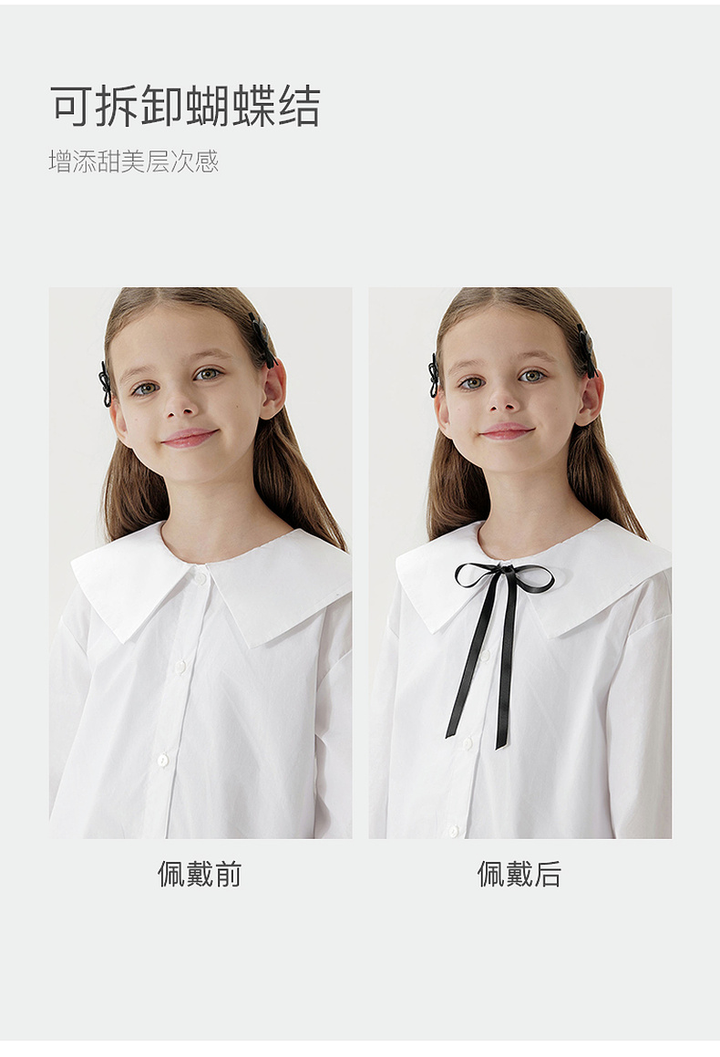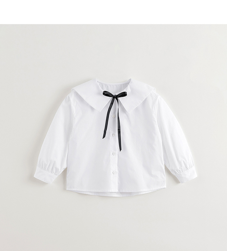马克珍妮女童蝴蝶结大翻领衬衫儿童纯棉衬衣2025年春装新款250173