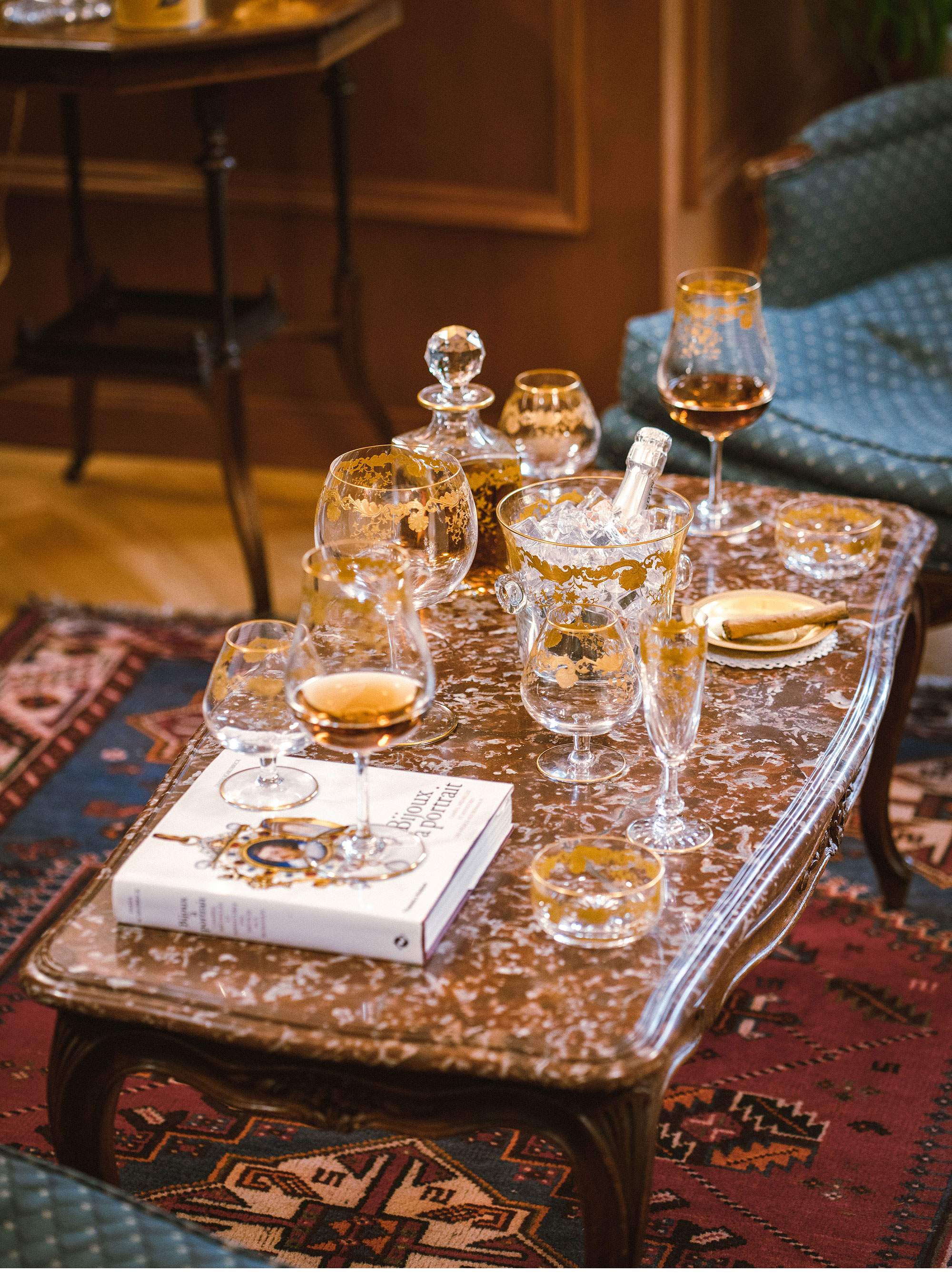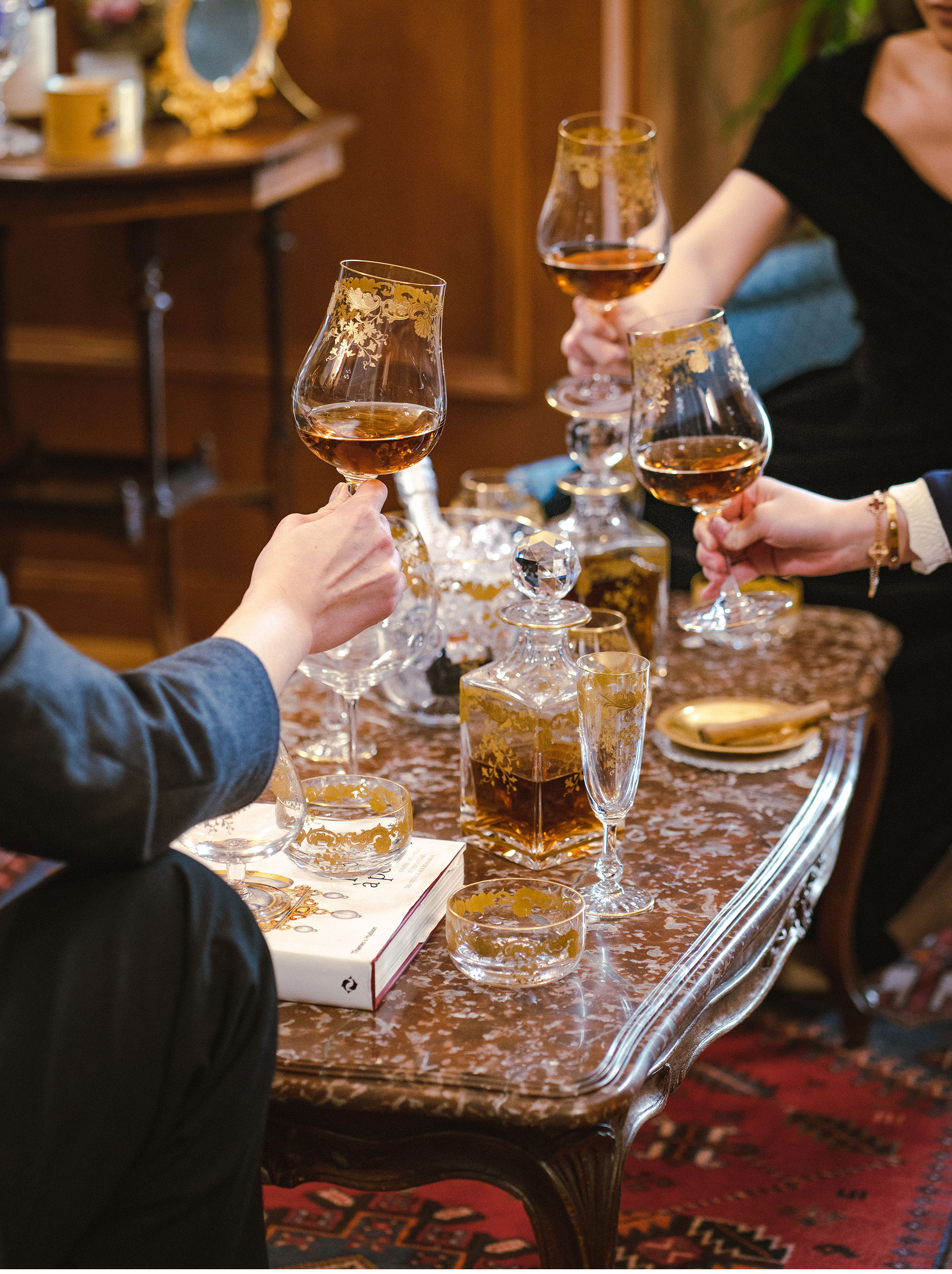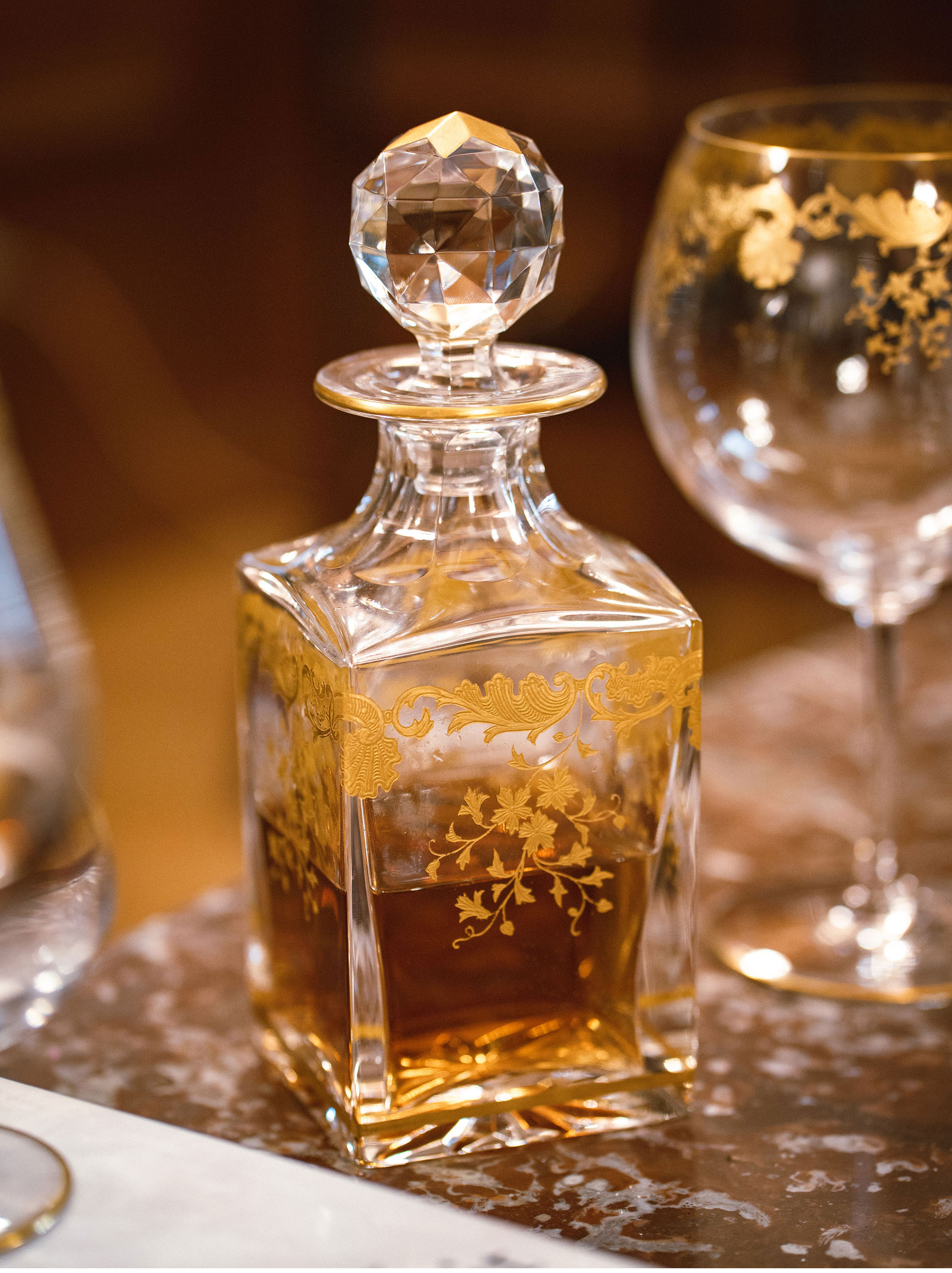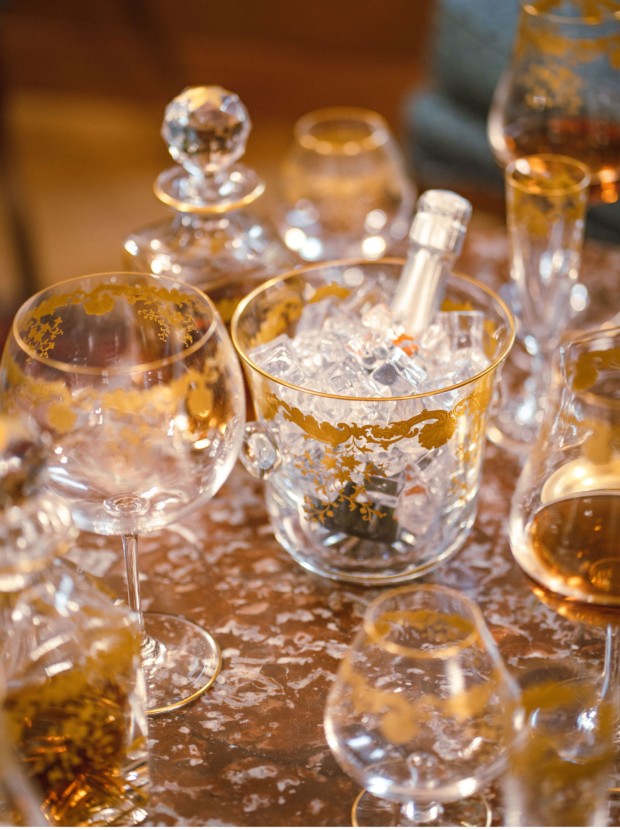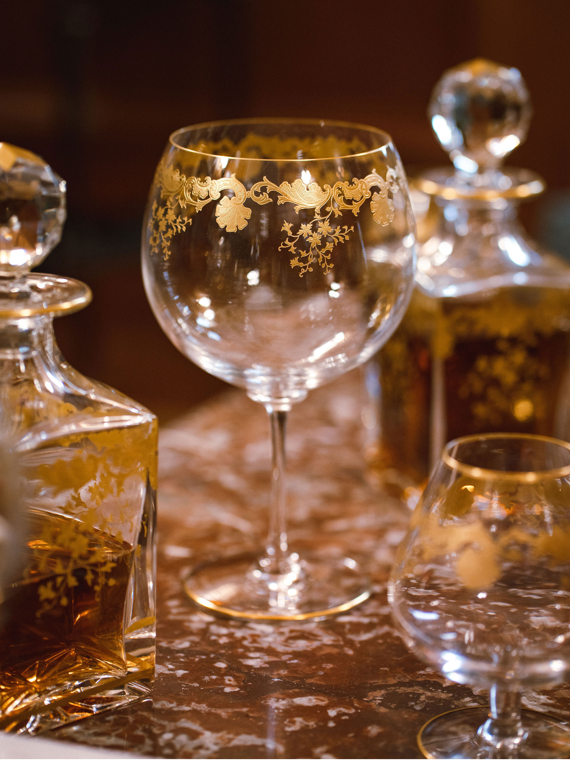 二十世纪初期法国著名水晶工坊Saint Louis签名出品描金水晶套件