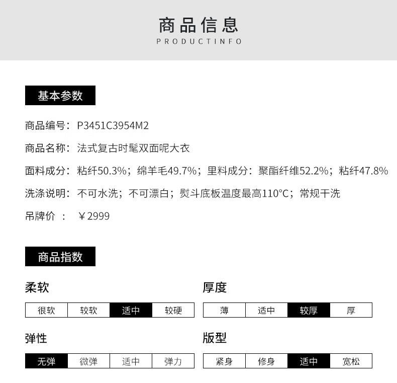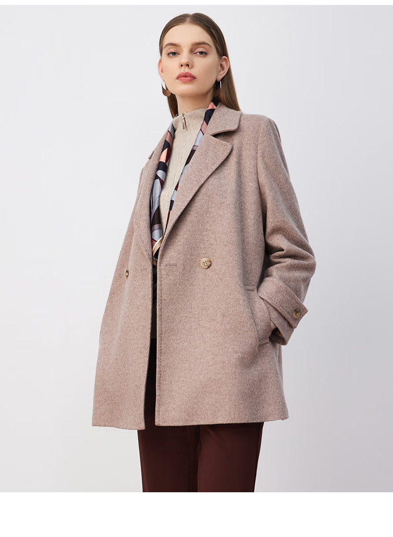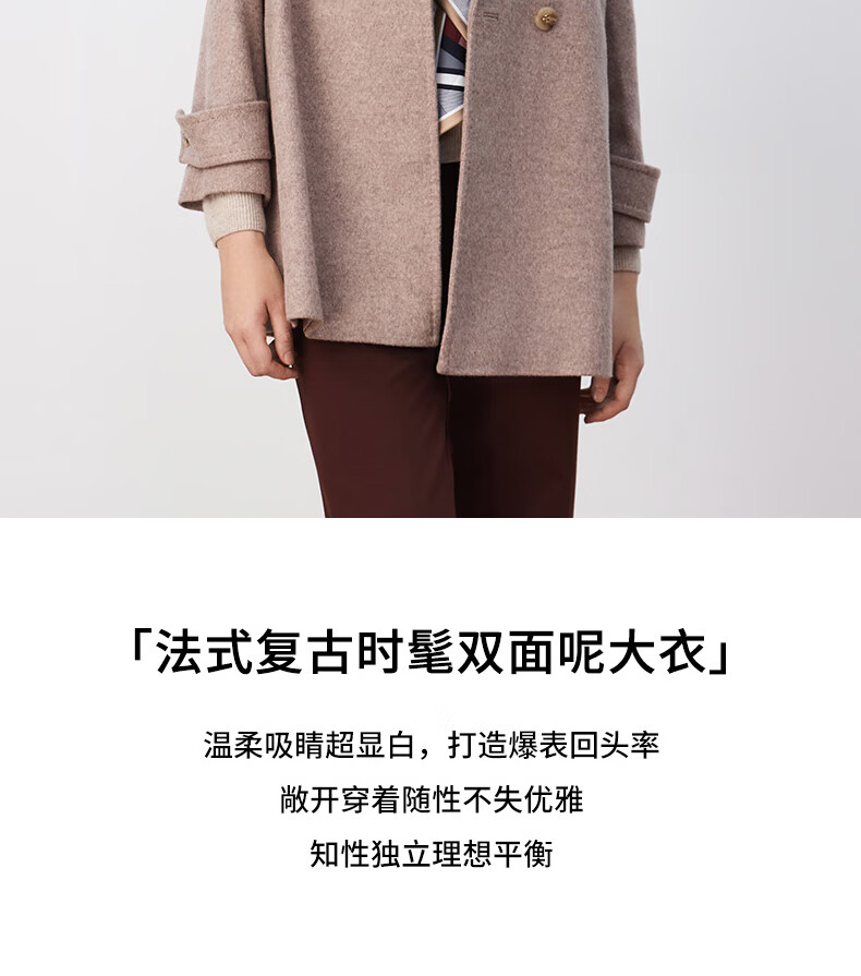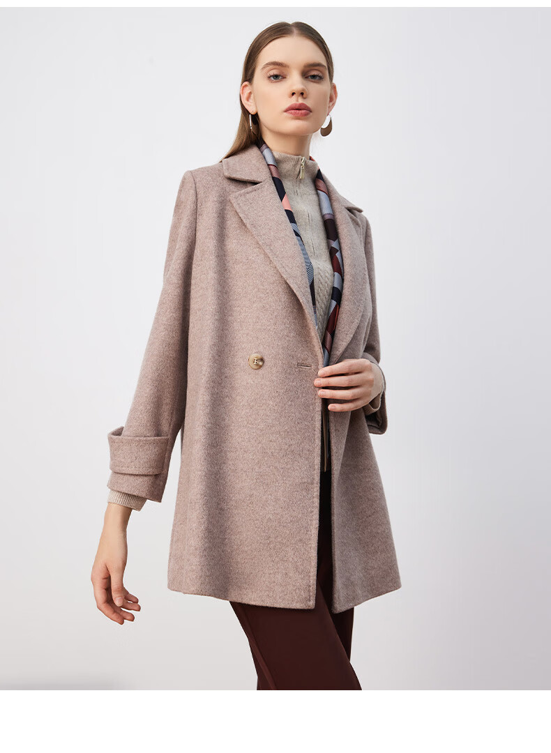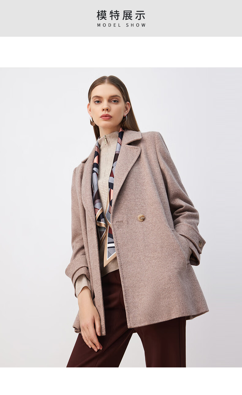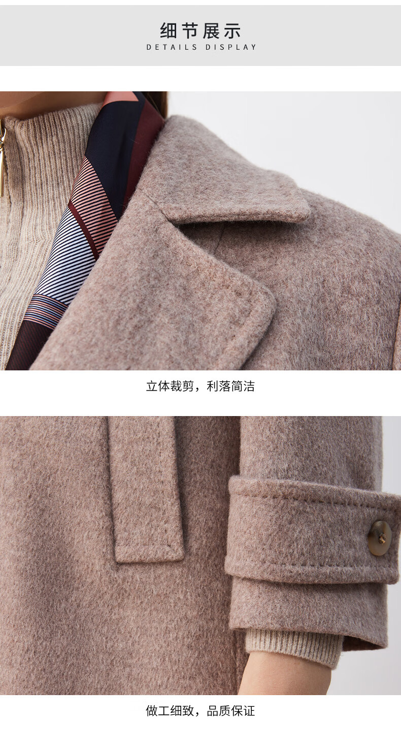 皮尔卡丹女装大衣英伦简约干练通勤短款毛呢大衣P3451C3954M2