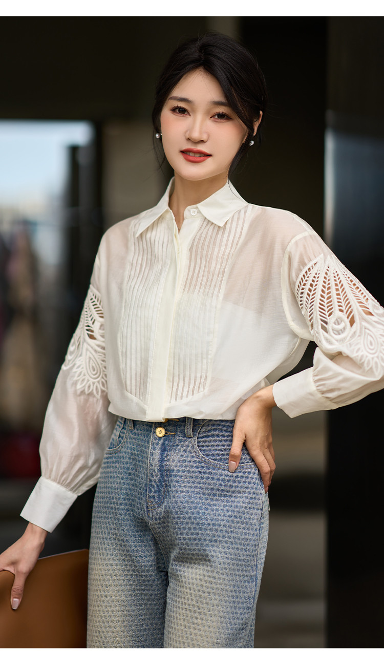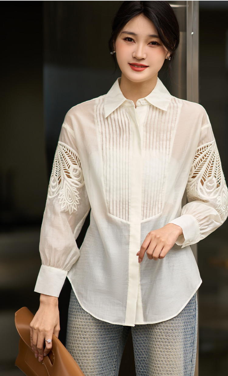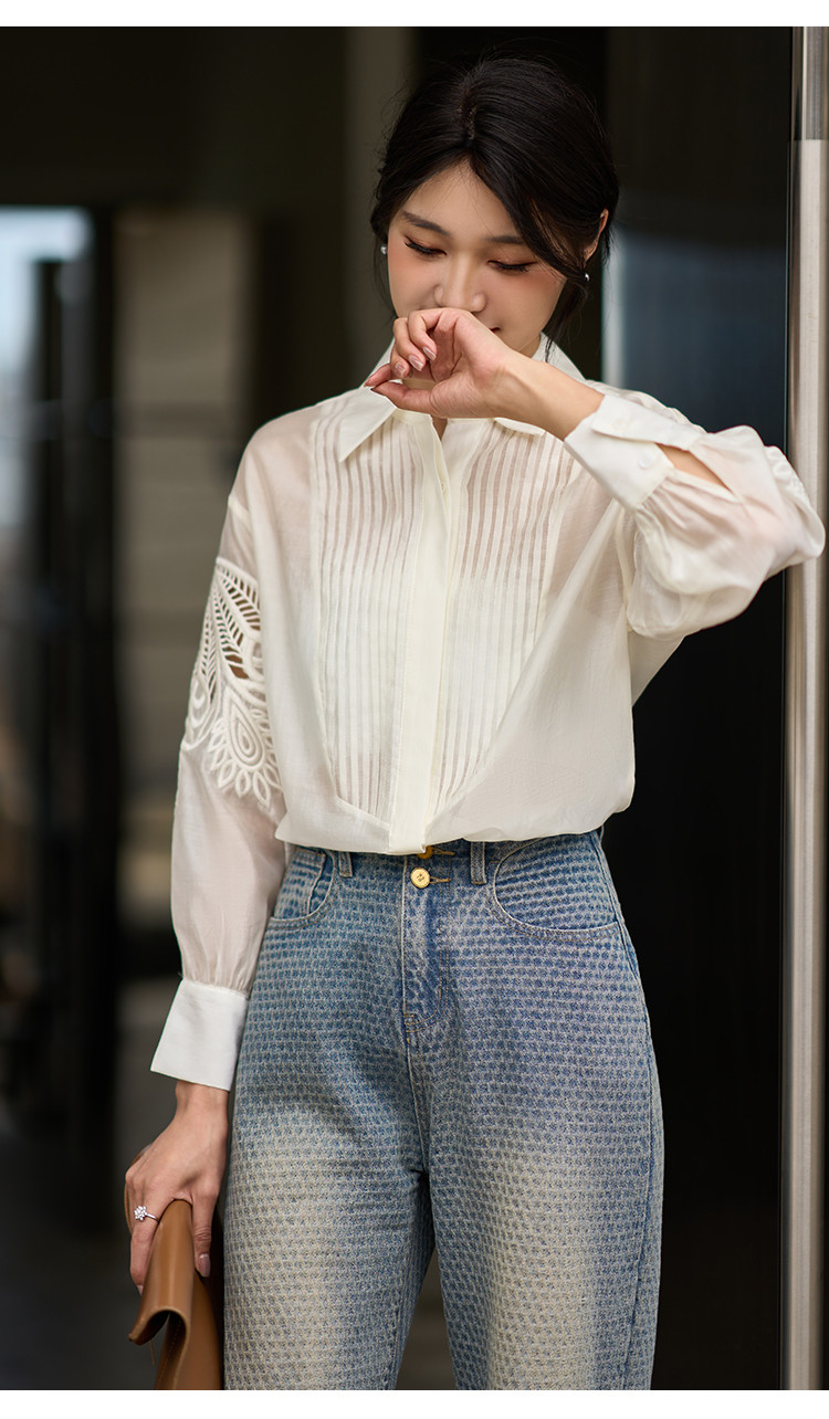 芳外2025夏季新款气质淑女风金纽扣薄款衬衣减龄百搭衬衫女1329