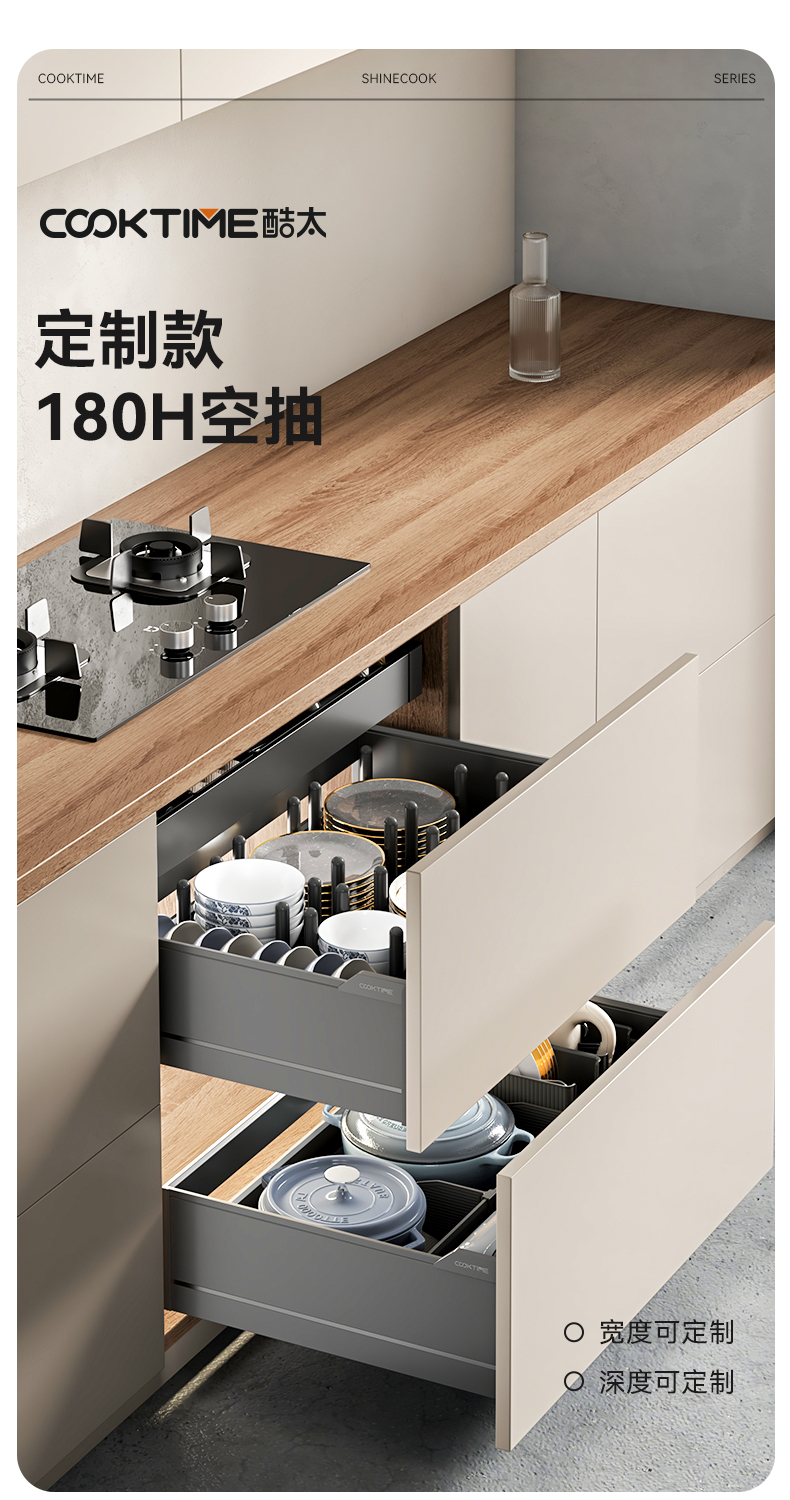 - 酷太坚持8年自主研发,已获得专利证书130项,拥有一套领先市场的厨房收纳系统,为千万中国家庭解决厨房脏乱差,缔造厨房新生活。