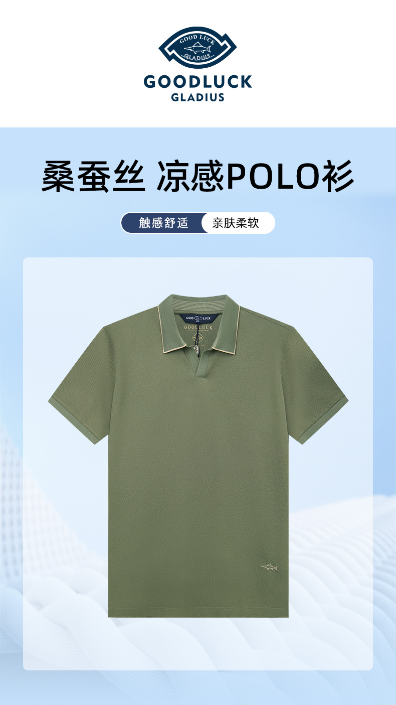 【桑蚕丝】德鲨桔色商务短袖POLO衫男2026夏季新款翻领T恤