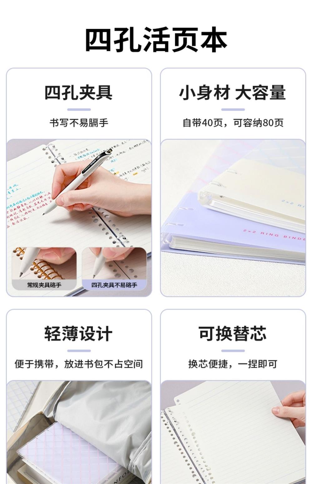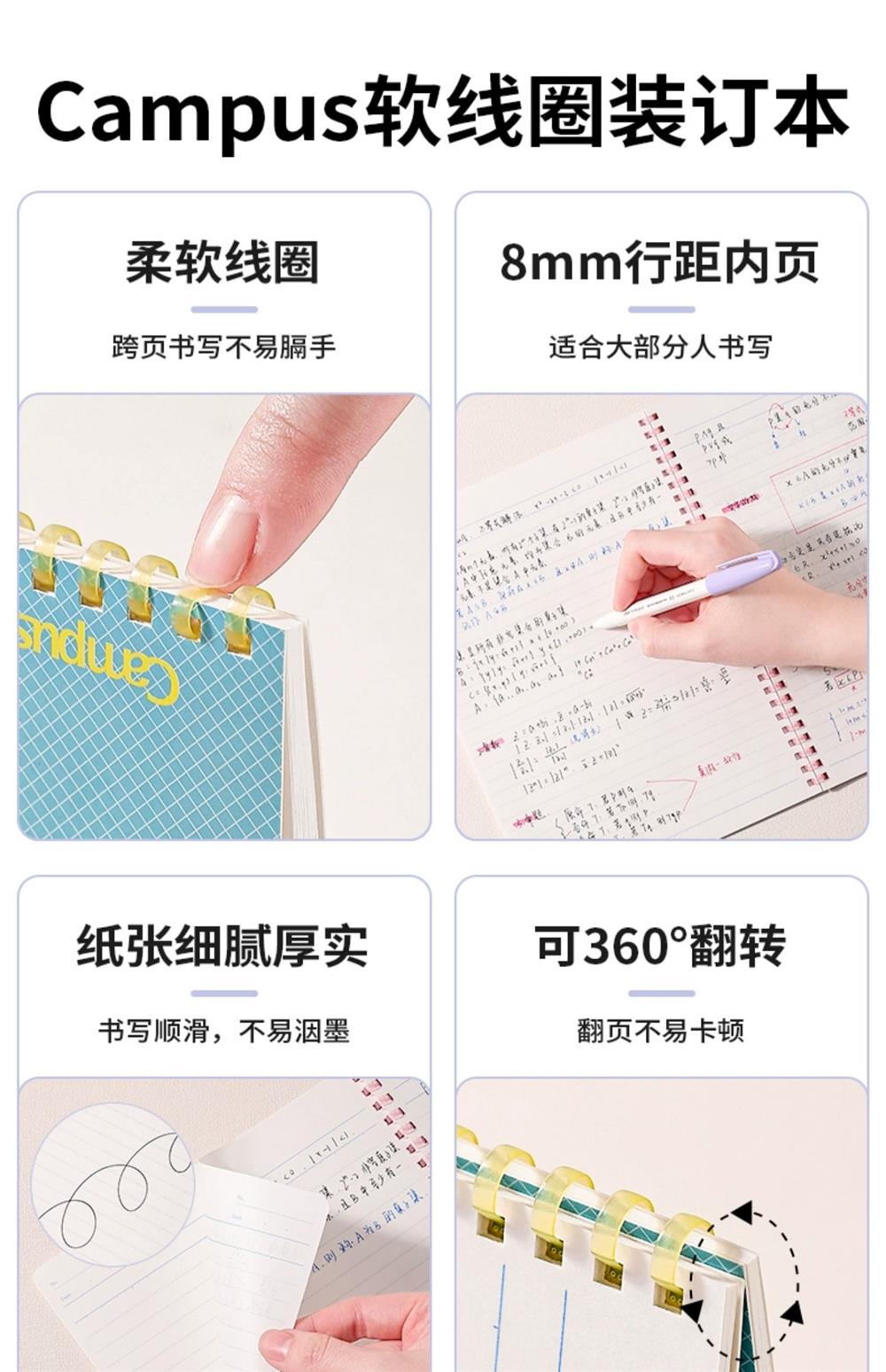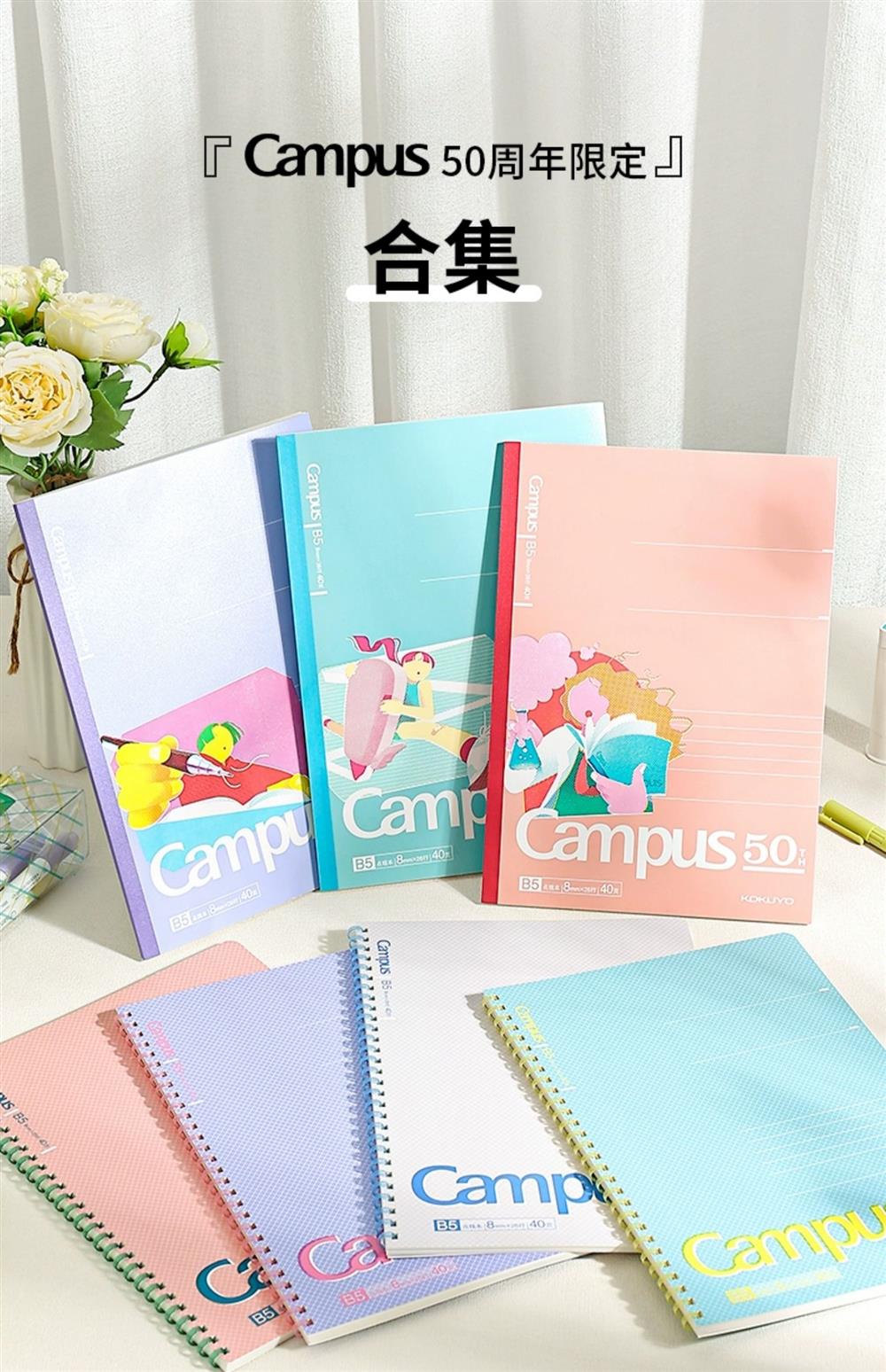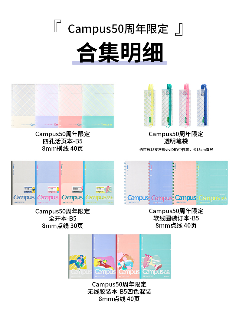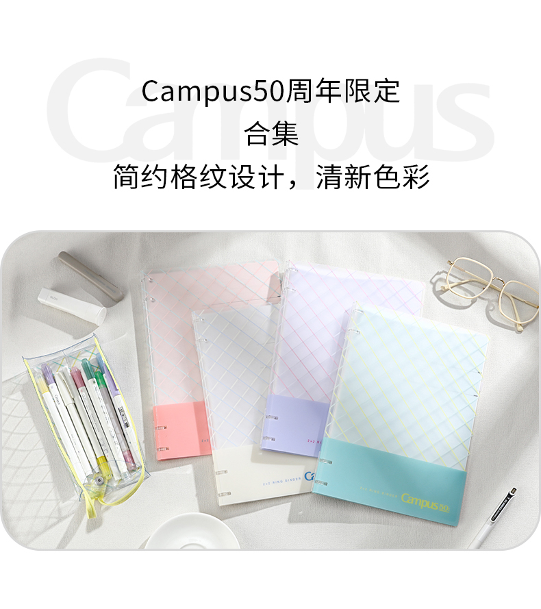国誉Campus50周年无线装订本软线圈本四孔活页本透明笔袋