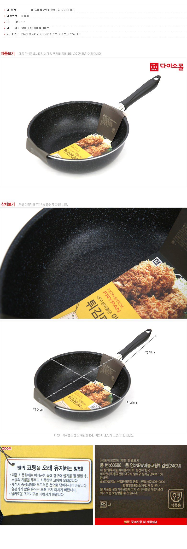 Daiso Frying Pan 平底锅 大创NEW大理石涂层天妇罗锅24CM-60686JPY带授权招加盟代理