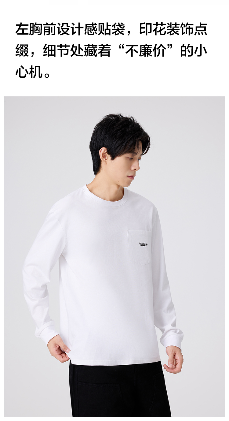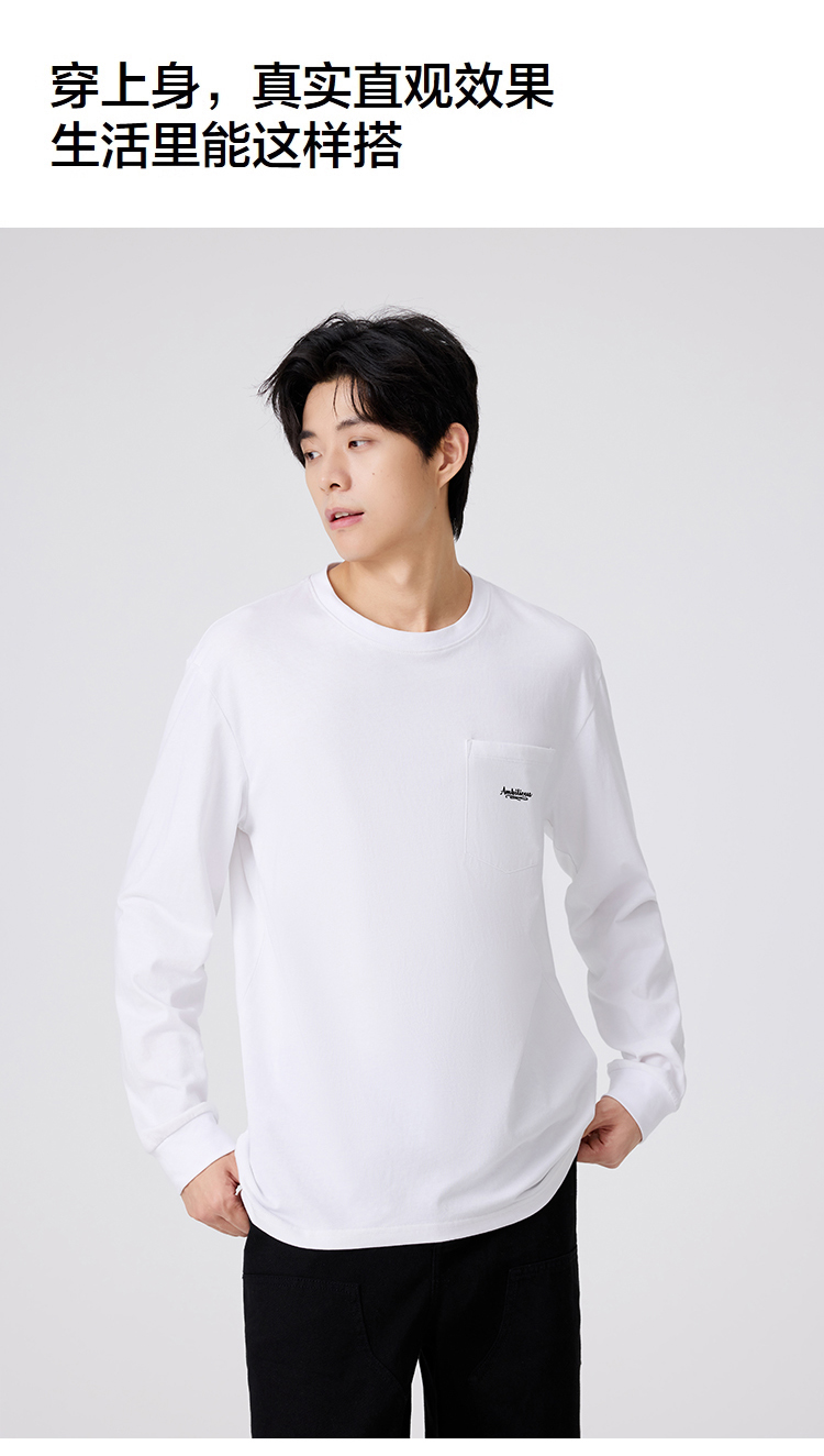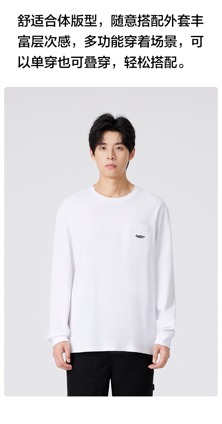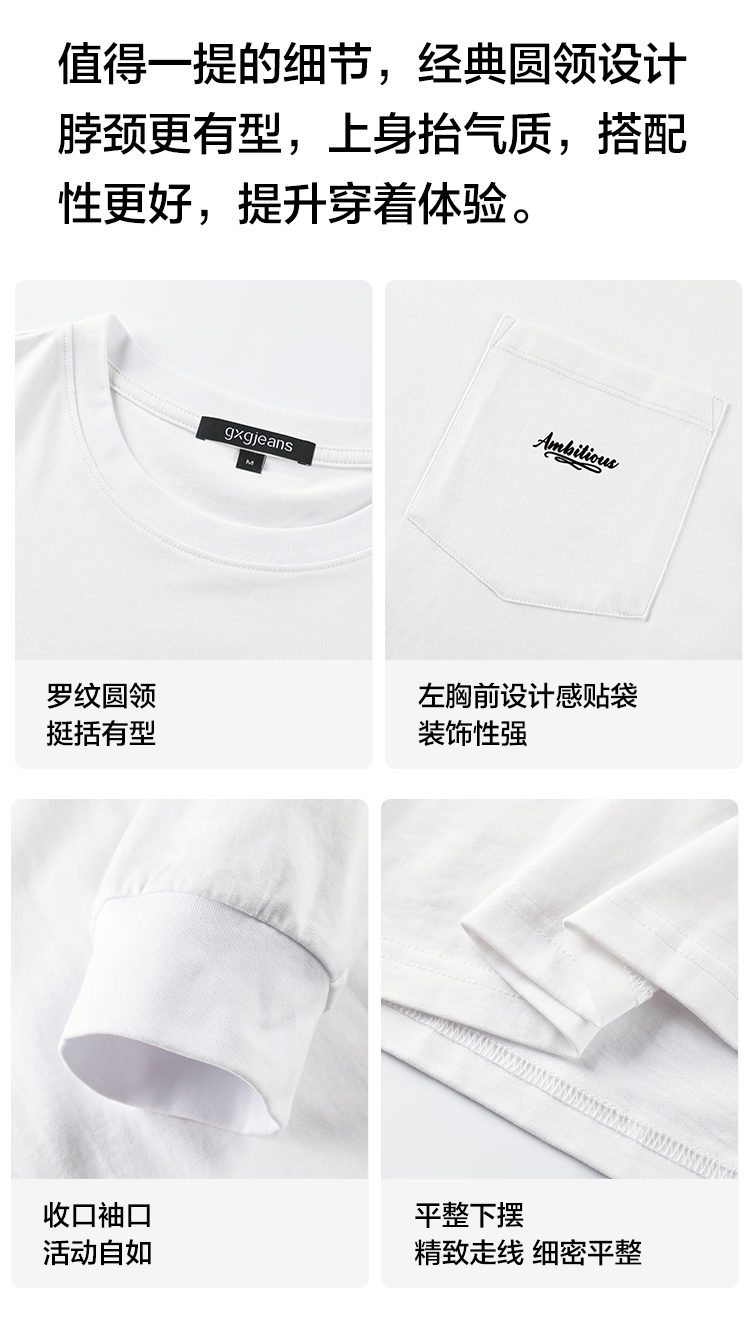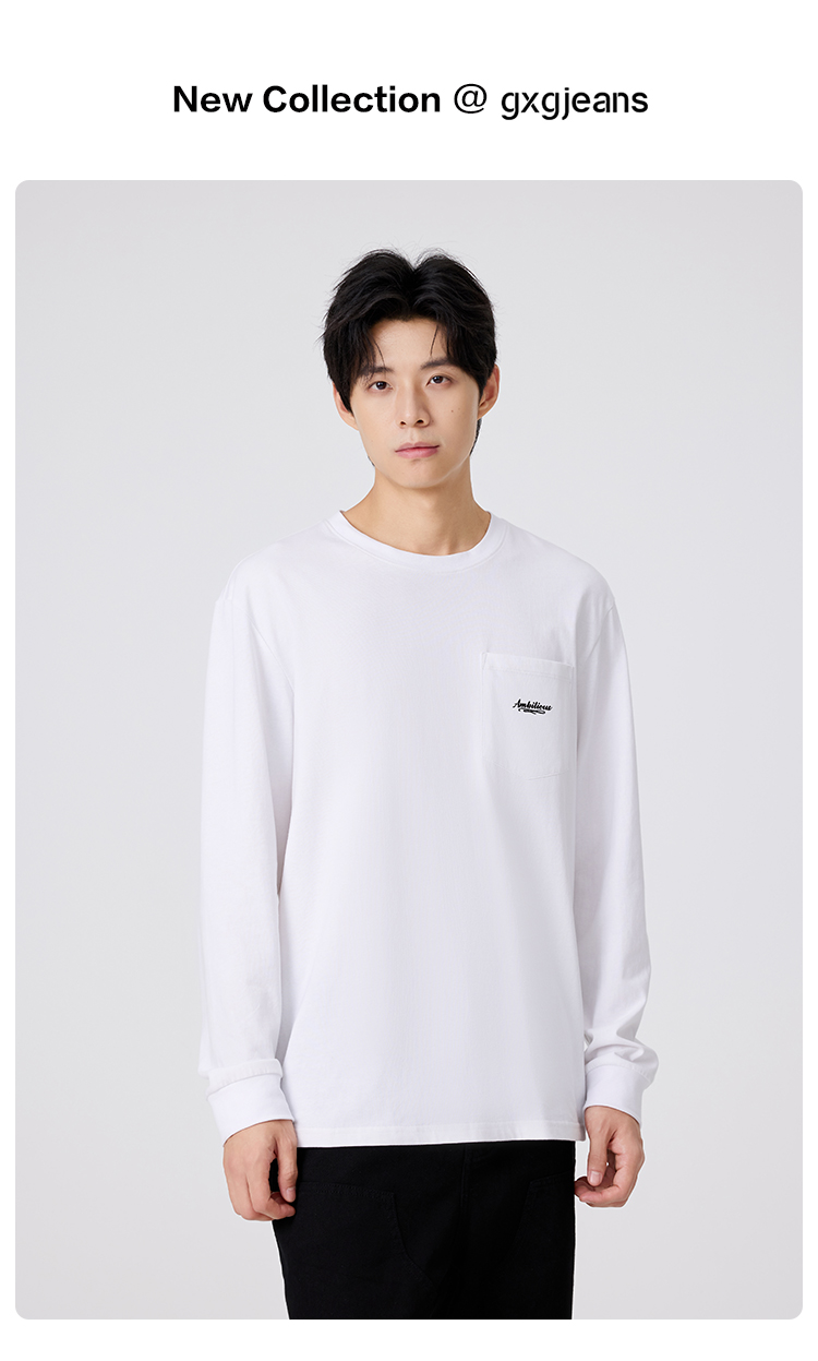 gxgjeans 男装【棉100%】男士长袖T恤25秋款简约舒适内搭情侣款打底衫K&C