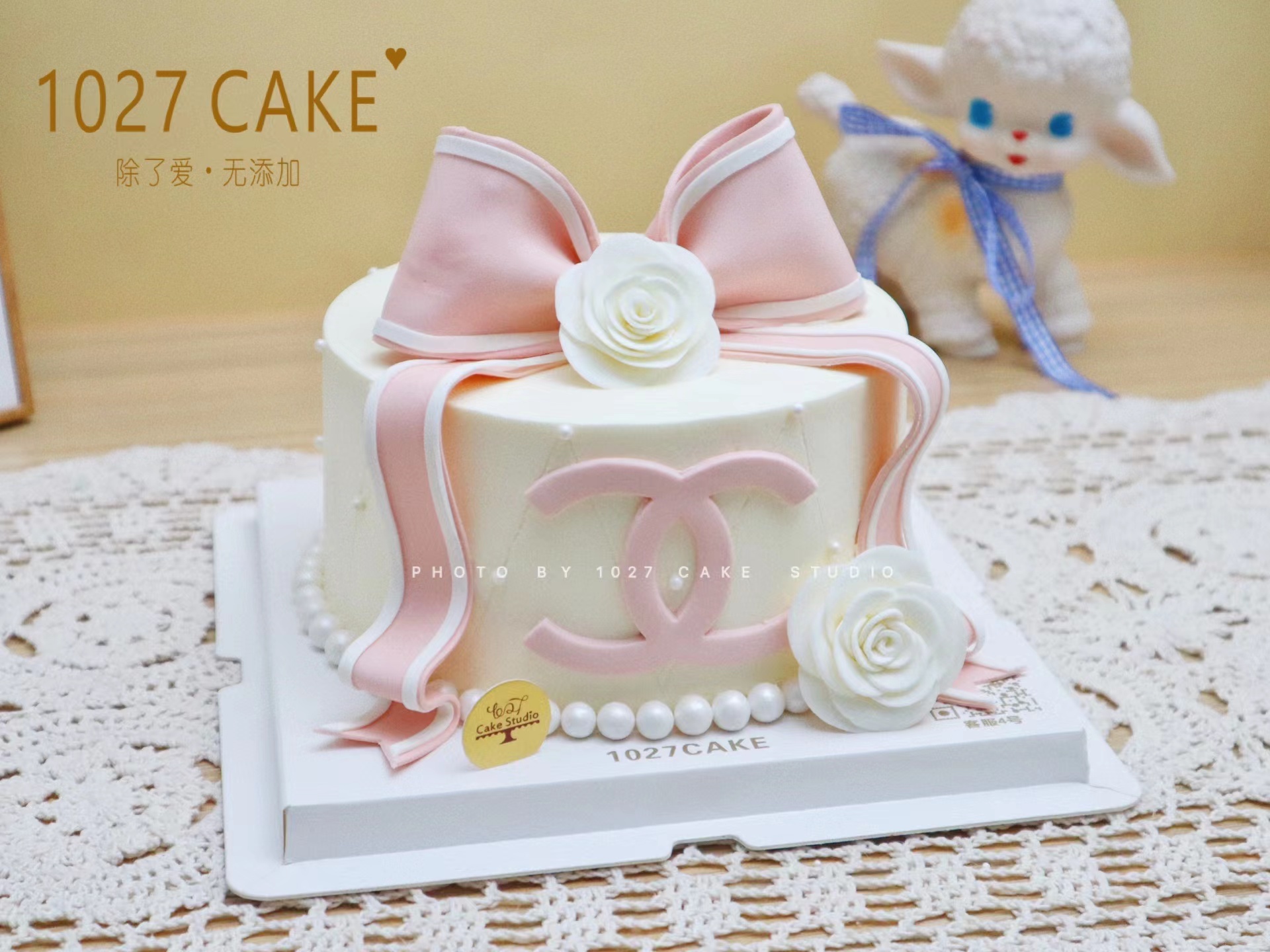 1027CAKE | 翻糖蝴蝶结 粉色系小香风 山茶花