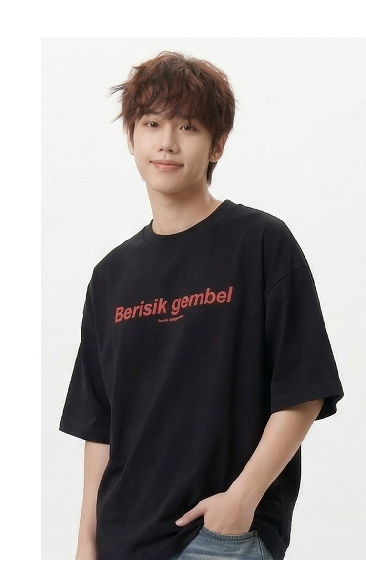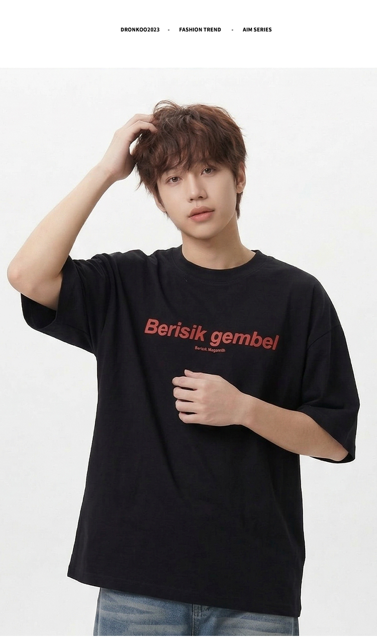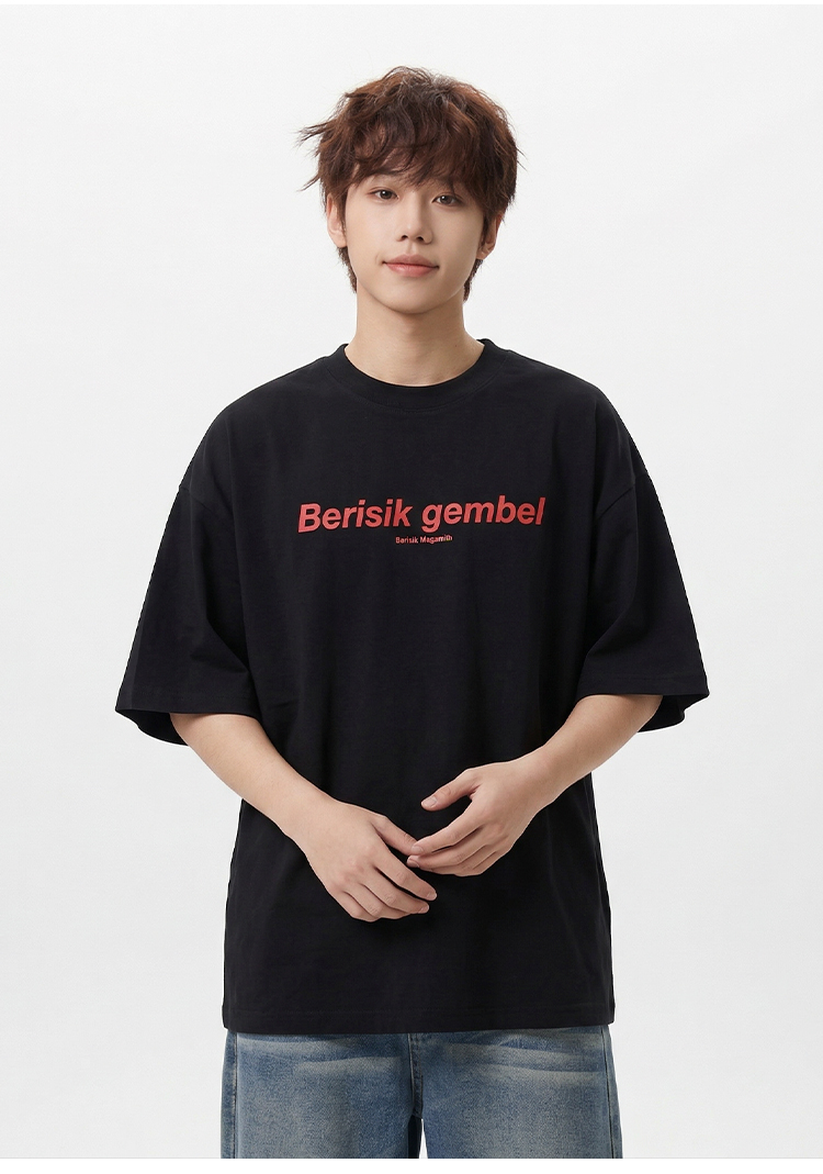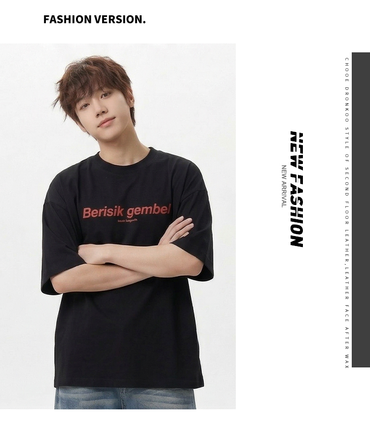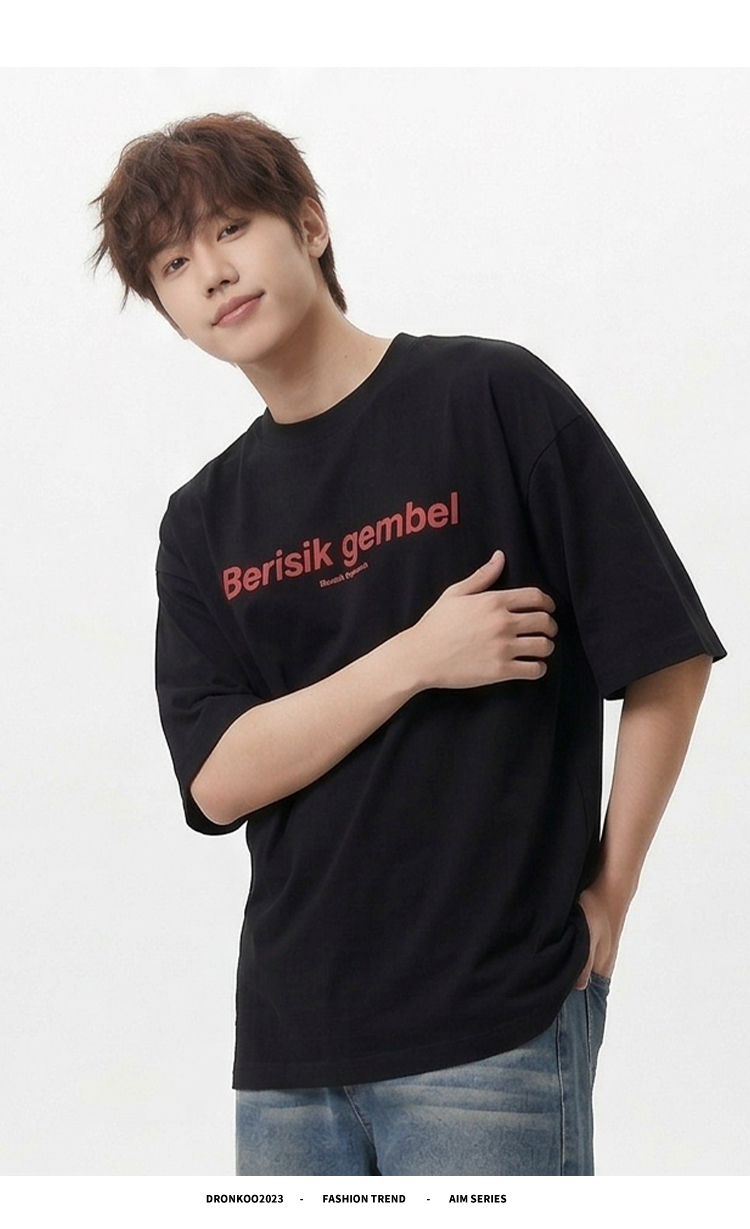 DRONKOO 2026 圆领前撞色后同色字母印花微阔短袖T恤