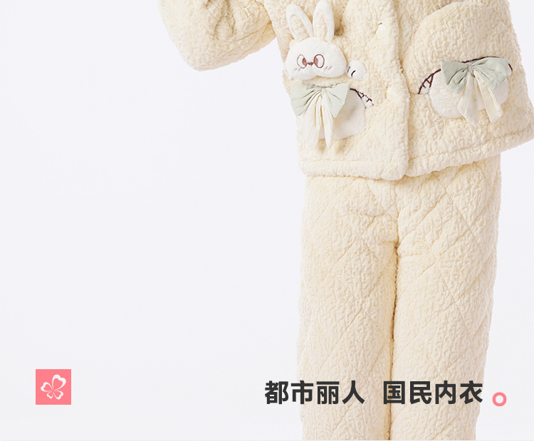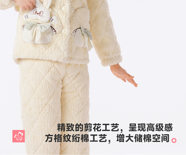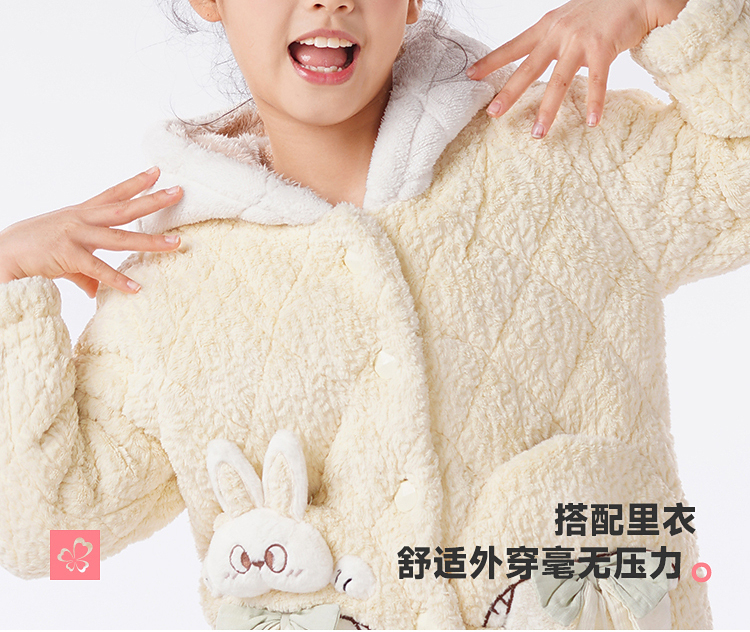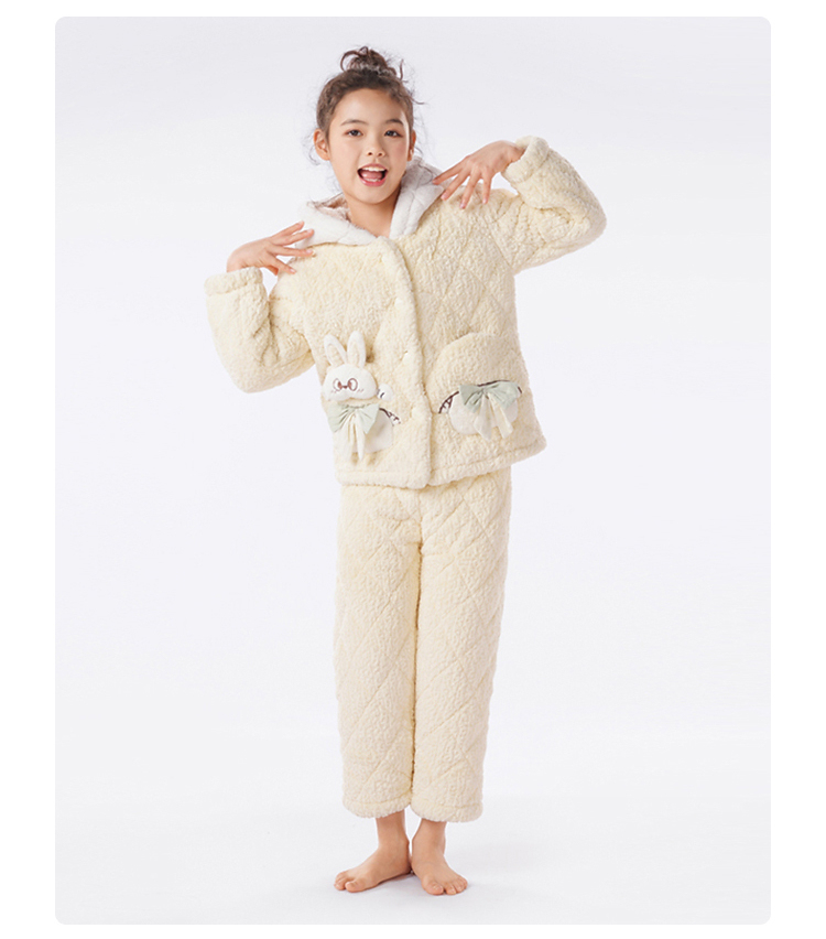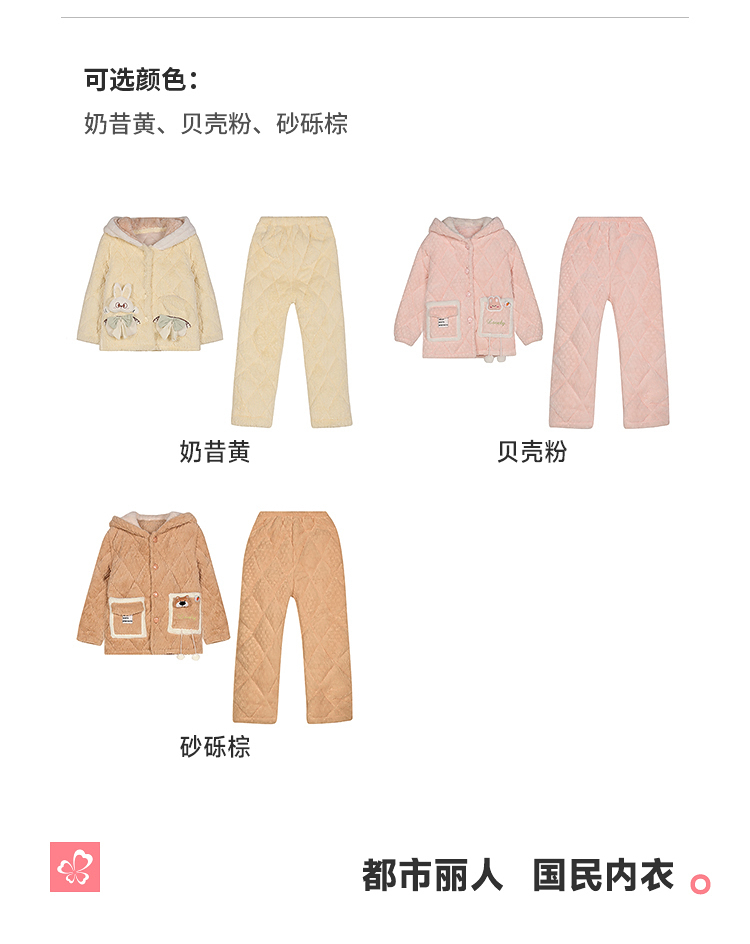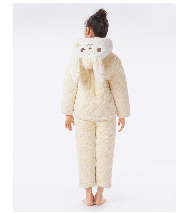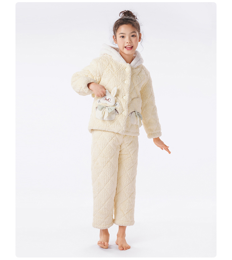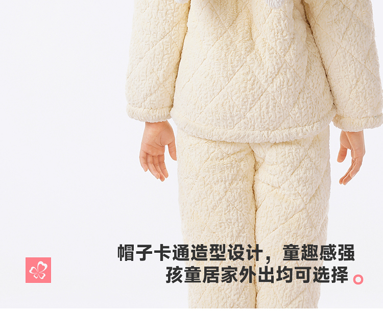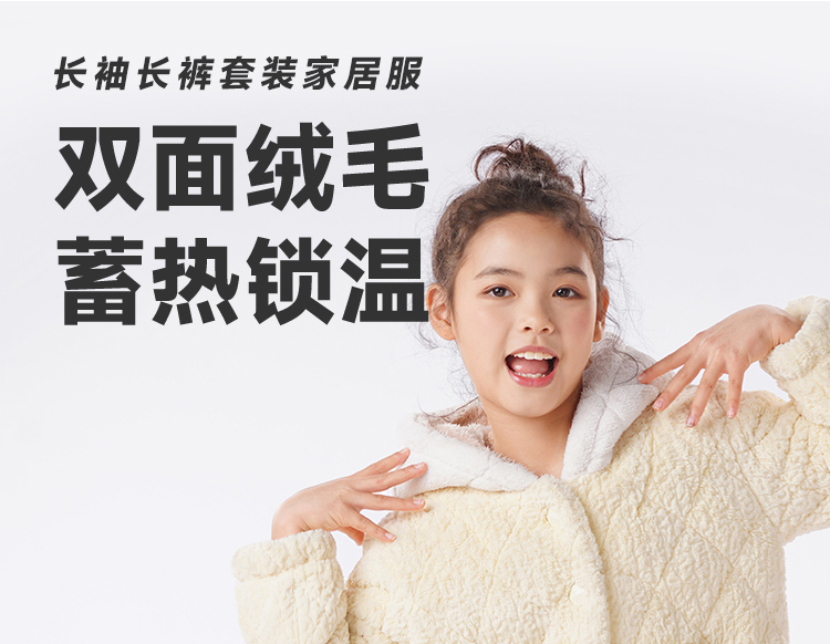 都市丽人睡衣男童女童烂花绒夹棉家居服长袖长裤童装中厚JHH1F4