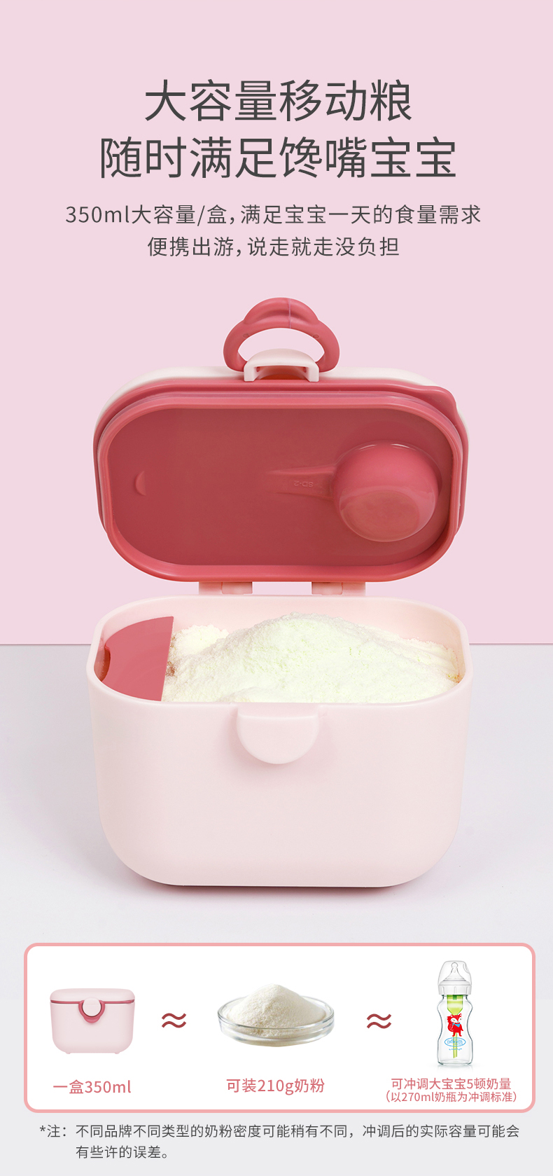 布朗博士新品奶粉盒便携密封防潮保鲜安全pp粉勺分离卫生奶粉盒