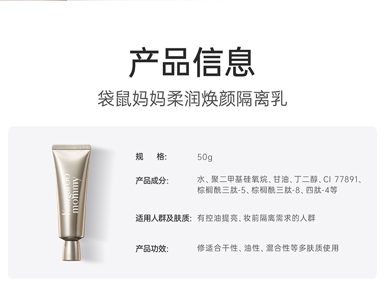 【遮瑕隔离乳】遮瑕 修色提亮 妆前乳 隔离防护二合一 袋鼠妈妈柔润焕颜隔离乳-50g