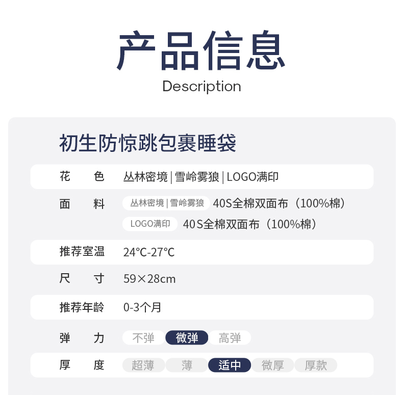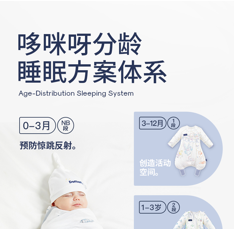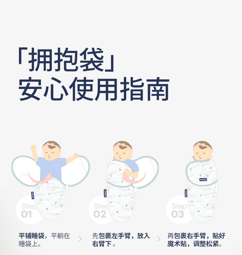 Domiamia哆咪呀寝具婴儿睡袋NB段防惊跳神器宝宝襁褓抱被新生儿0-3月春秋款DMA-182508/DMA-182522