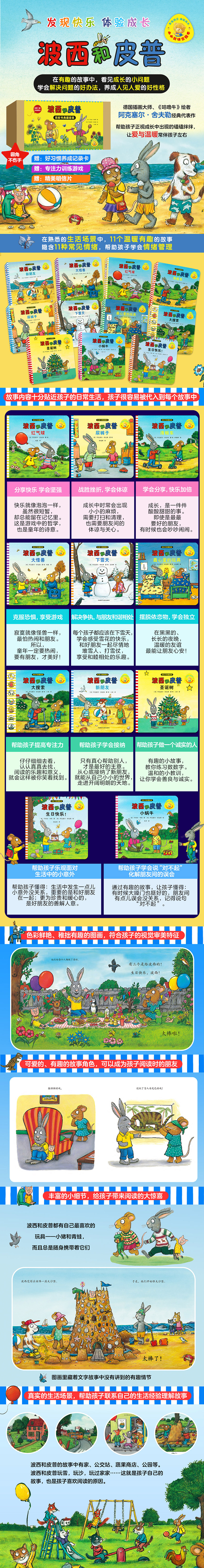 “波西和皮普”系列是一套专门为0-3岁幼儿打造的,由世界著名图画书大师,英国百年十大童书《咕噜牛》的绘者阿克塞尔·舍夫勒精心创作,围绕幼儿期多个关键的性格主题,开发幼儿的情绪智力,培养幼儿的健全人格,全面提升幼儿的情商管理。