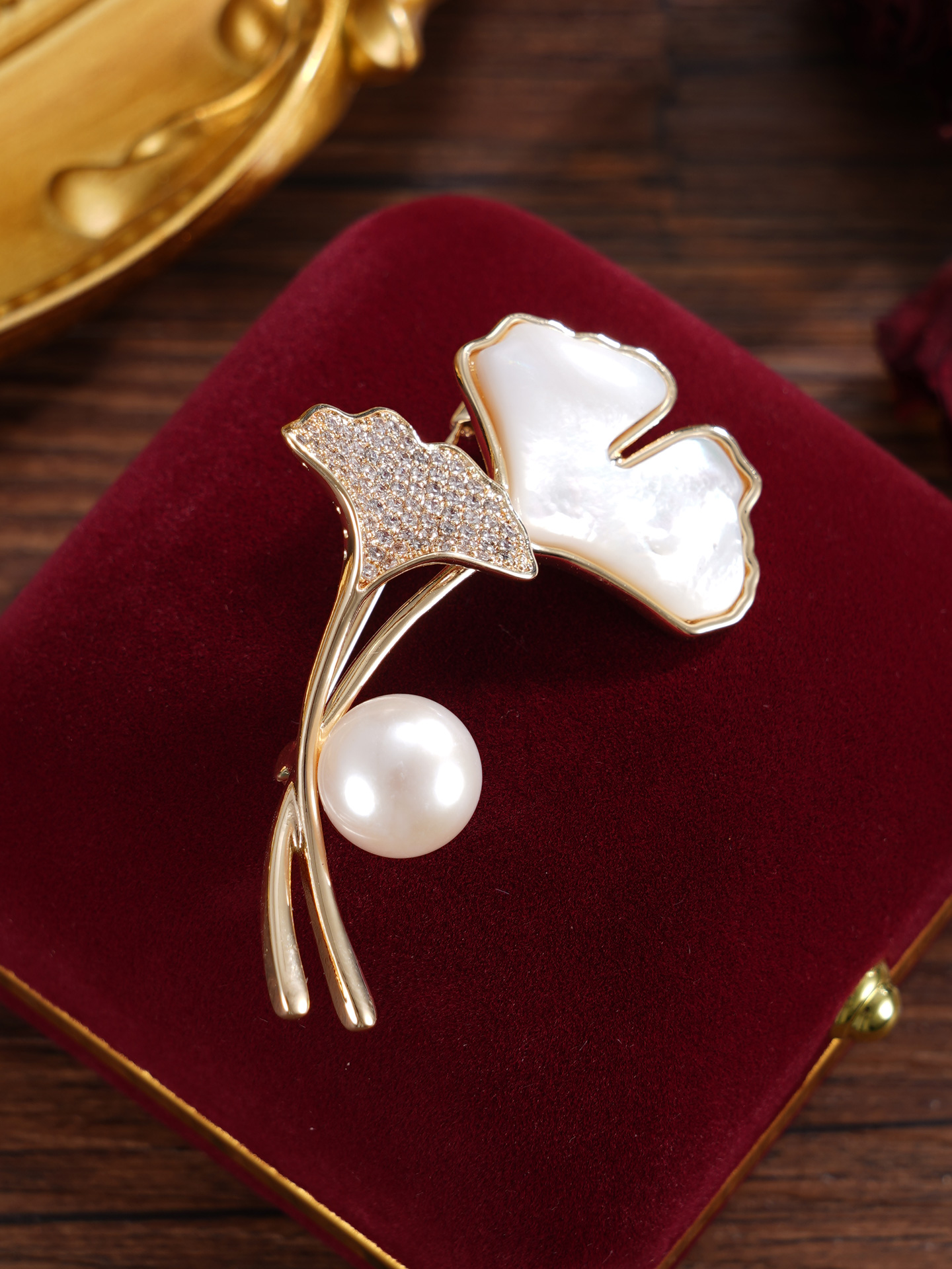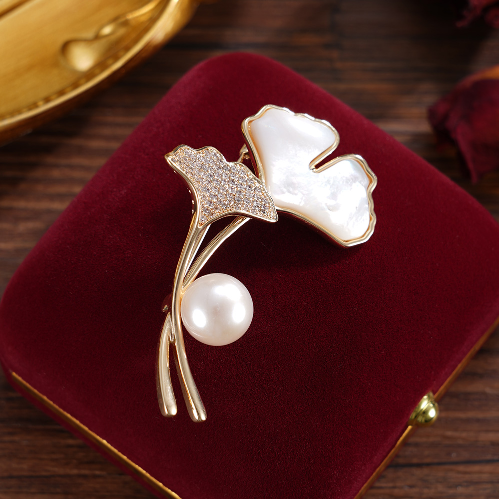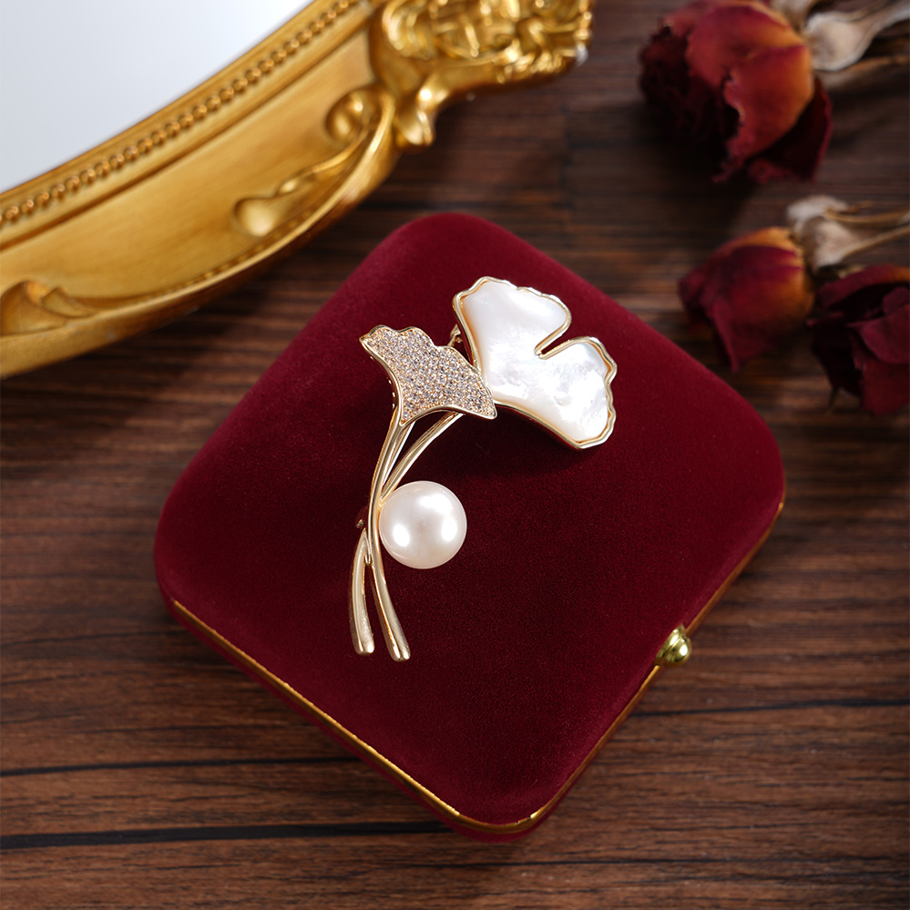 子佩集【杏运相伴】珍珠惜王妃胸针【ZXXZ001】10.5mm珠镀金银杏叶2601