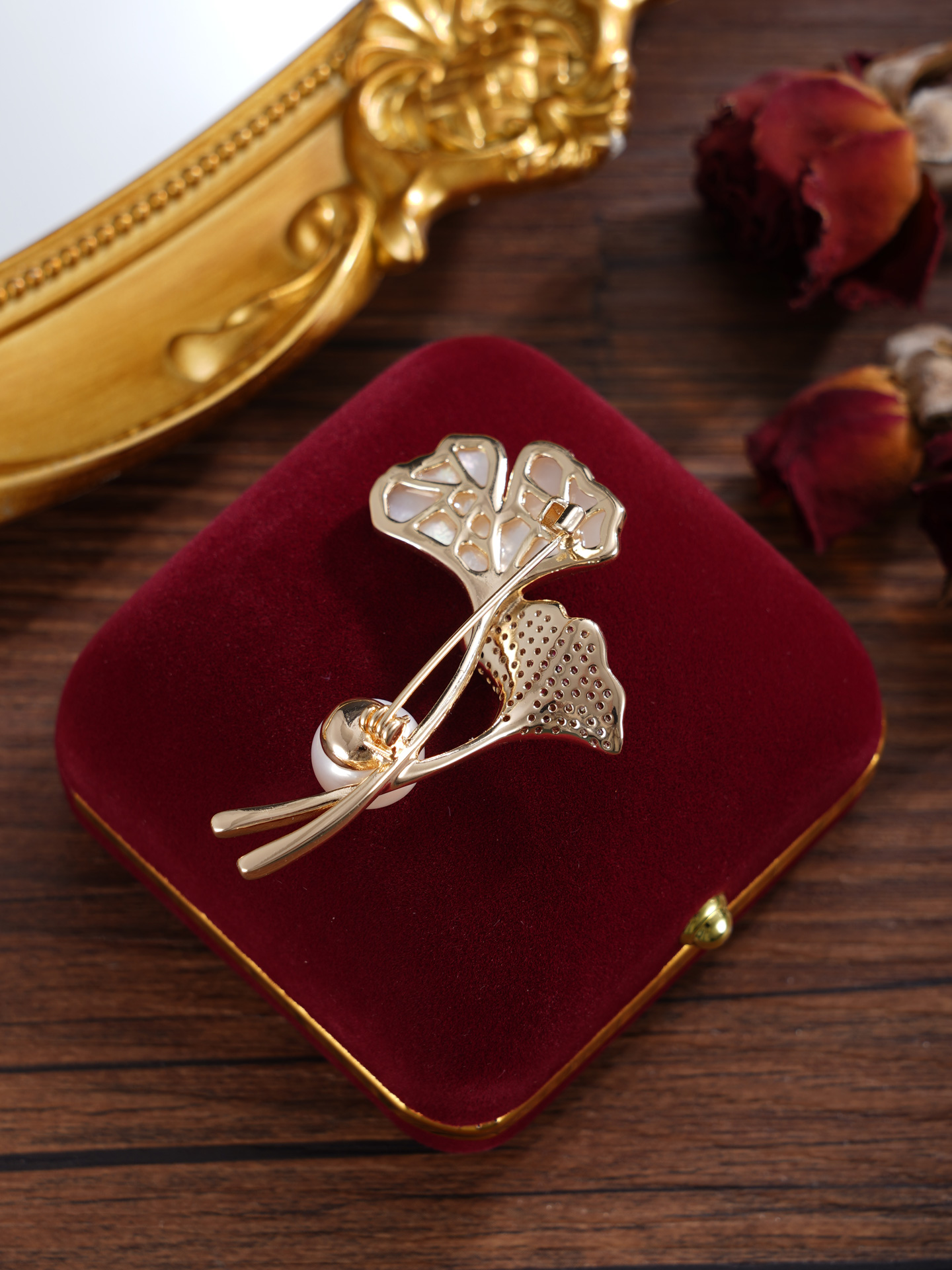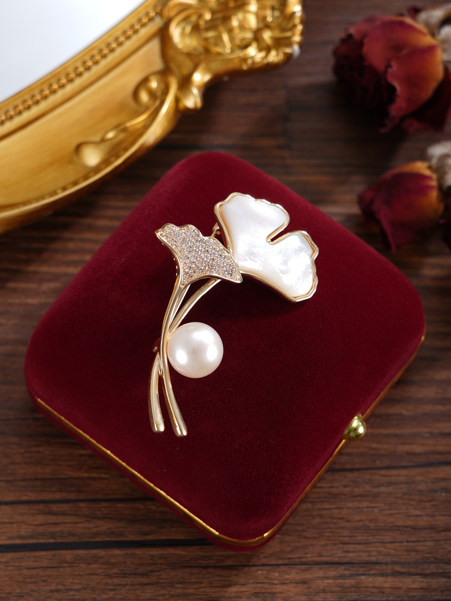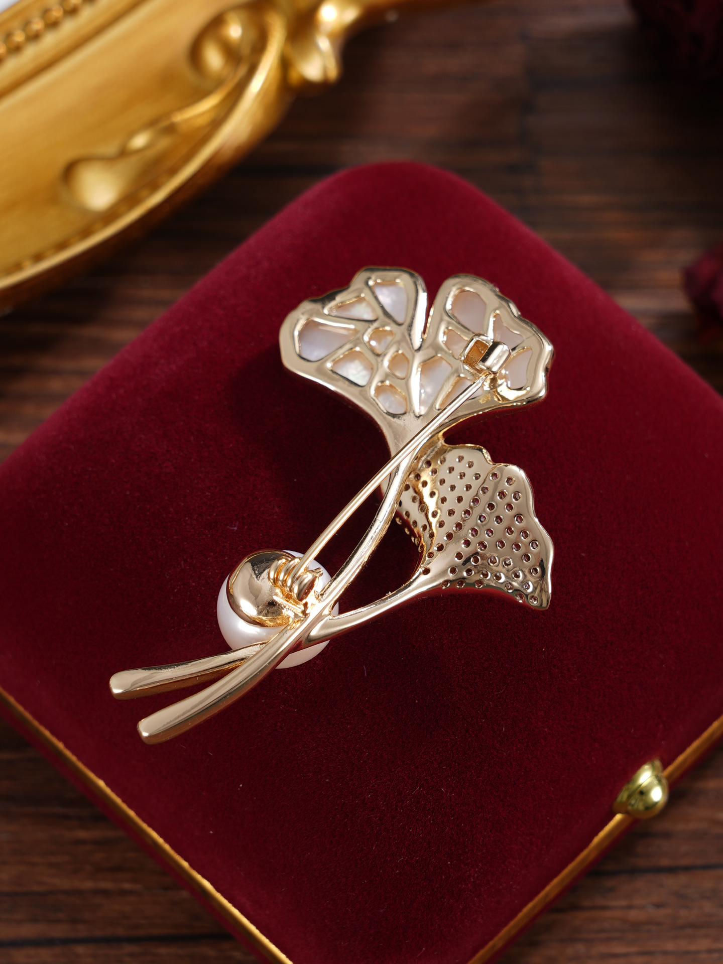 子佩集【杏运相伴】珍珠惜王妃胸针【ZXXZ001】10.5mm珠镀金银杏叶2601