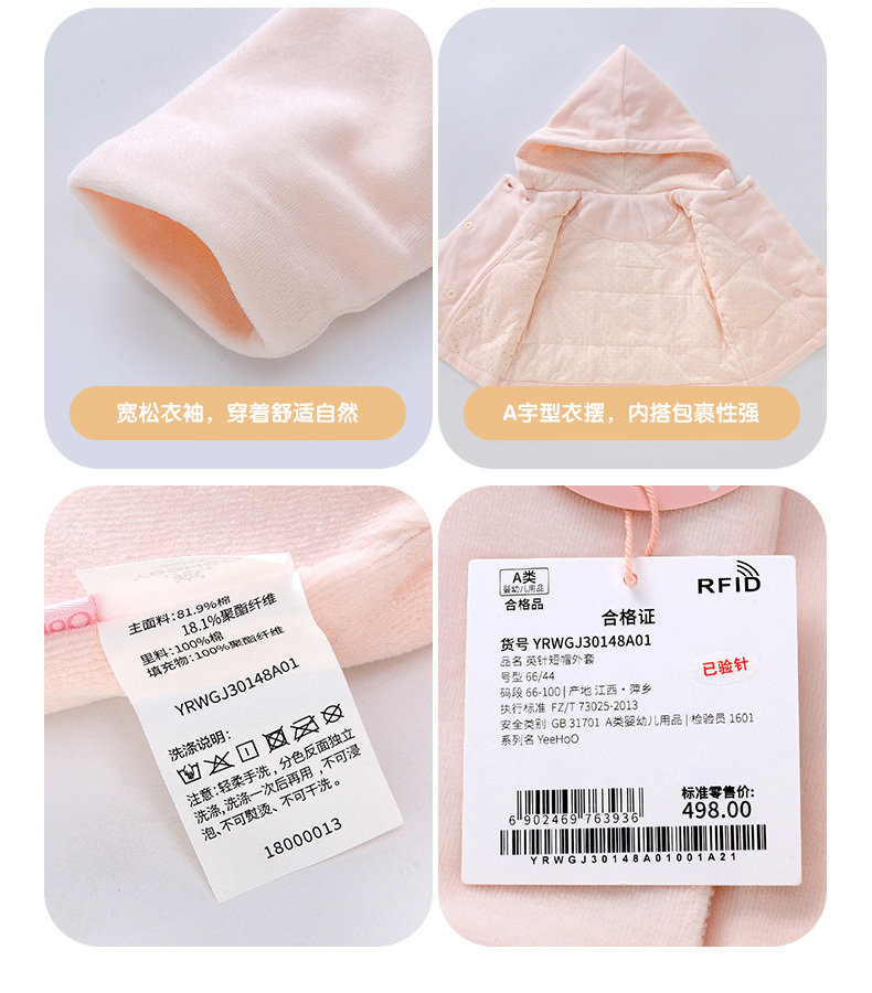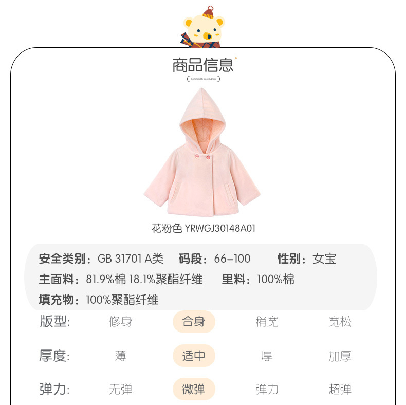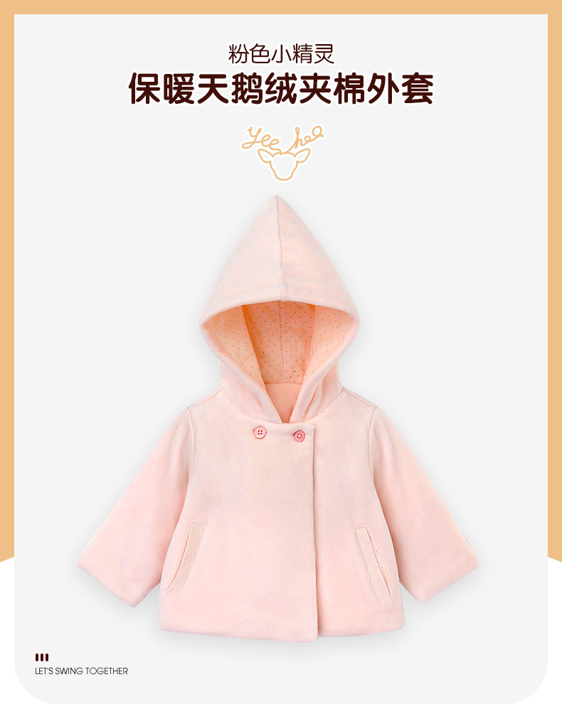 英氏-童衣类(秋)D0英针短帽外套 花粉色 100CM