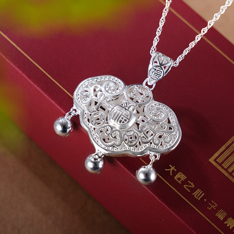 子佩集S990银【祥云福】套链项链【CM4011-6】纯银儿童长命锁2406