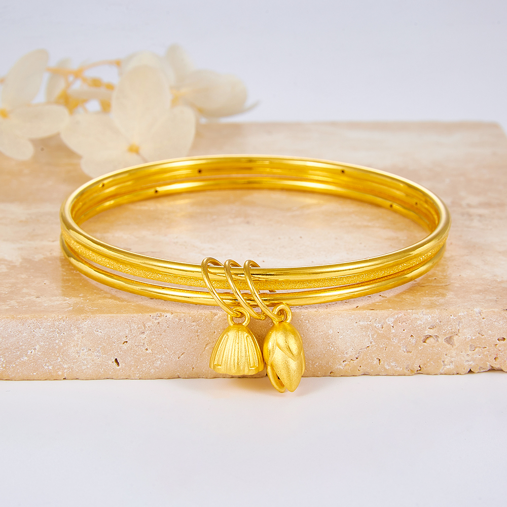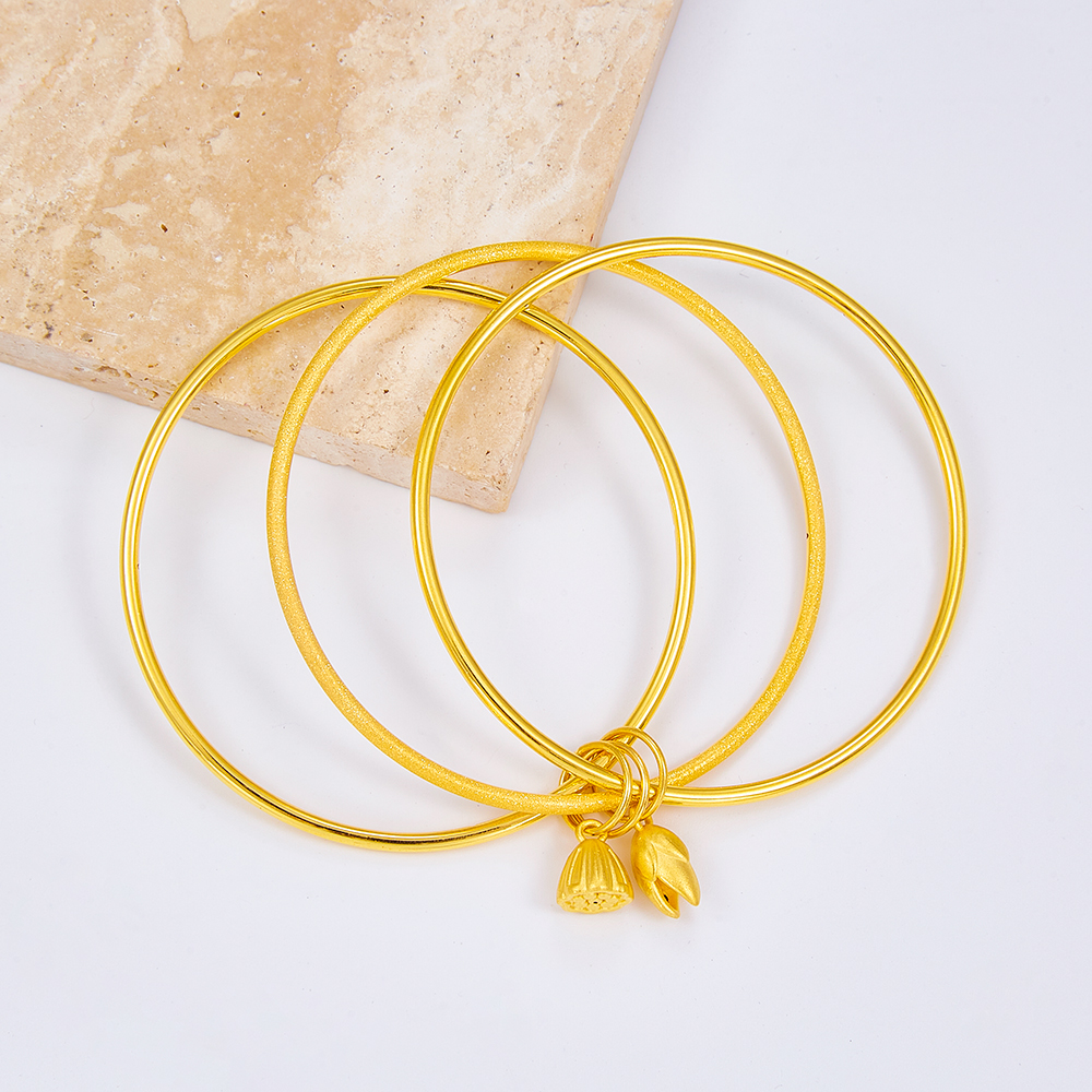 【限时克减150元】足金 #两世欢 3D硬金两世欢三圈(总面宽约6-6.5mm)空心固口手镯(N3DSZ00069)(预售产品下单后不退款不退货不换货不补差价)