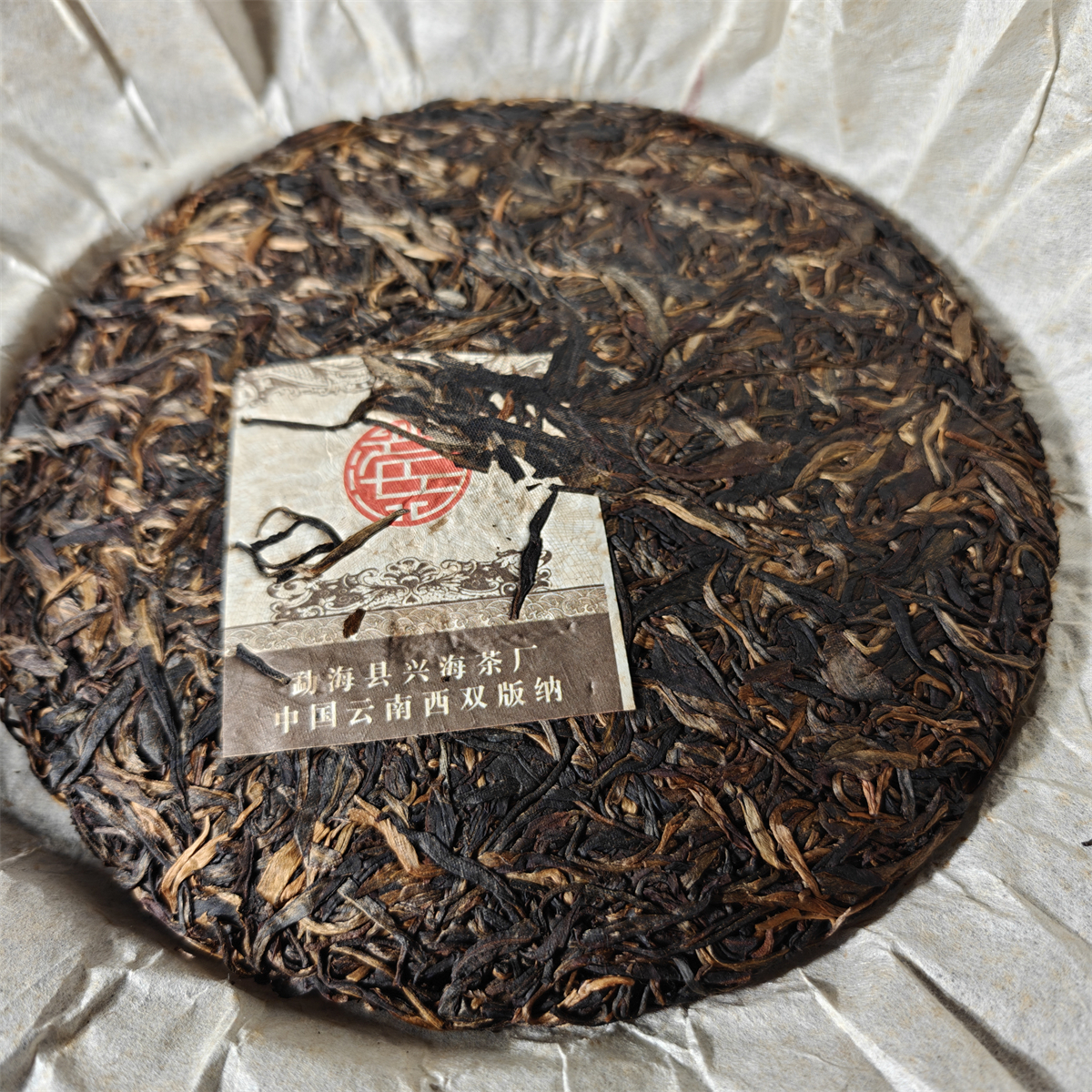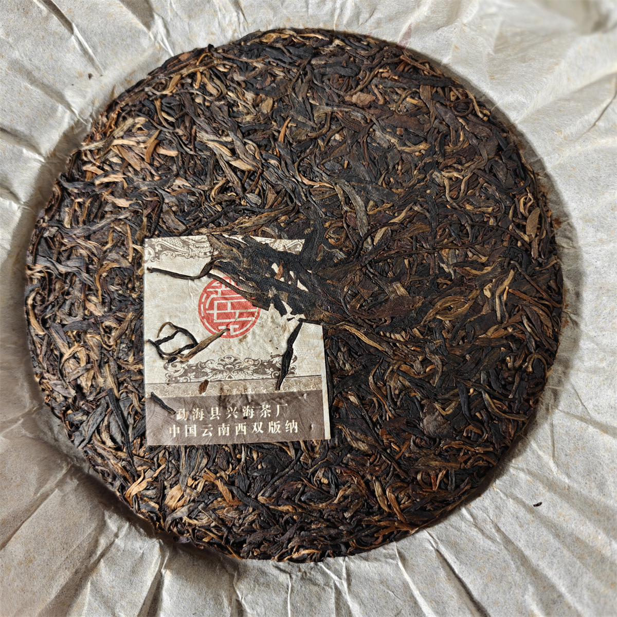 (很多人可能不知道,兴海茶厂厂长张建丽,是杜琼芝的侄女,当时马年纪念饼原定的班章料子,就是出自杜琼芝的大白菜料,但是收到的那批易武茶料,确实口感太好了,包阔张建丽,杜琼芝,等几位业内人士试喝,易武料口感远远超过了大白菜的口感,所以就成就了,这批兴海历史上【唯一的】易武茶,【最好喝】的易武茶)