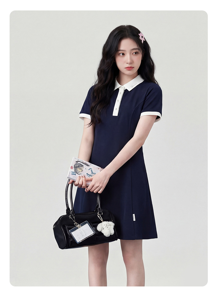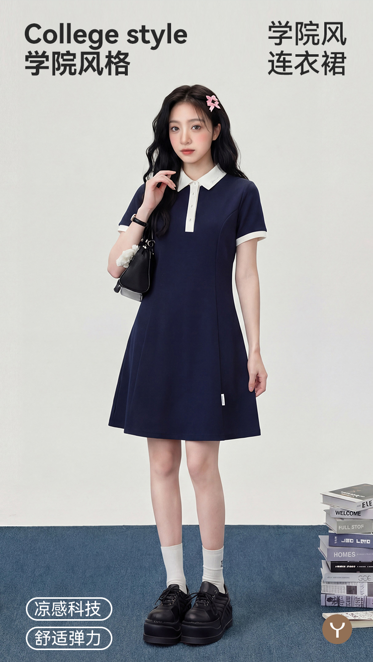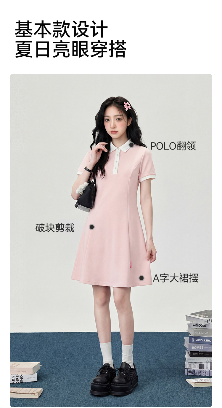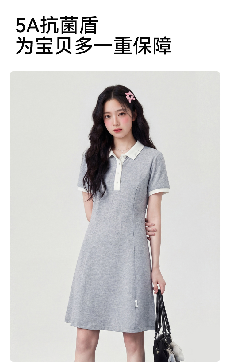 【英氏】【5A抑菌凉感】【140-175】女童夏季短袖polo连衣裙