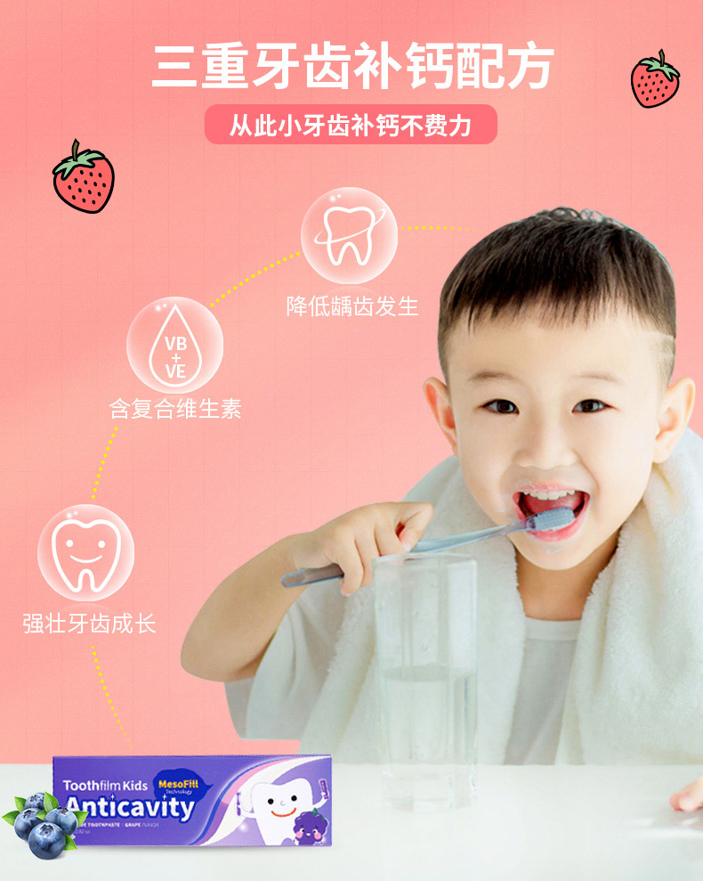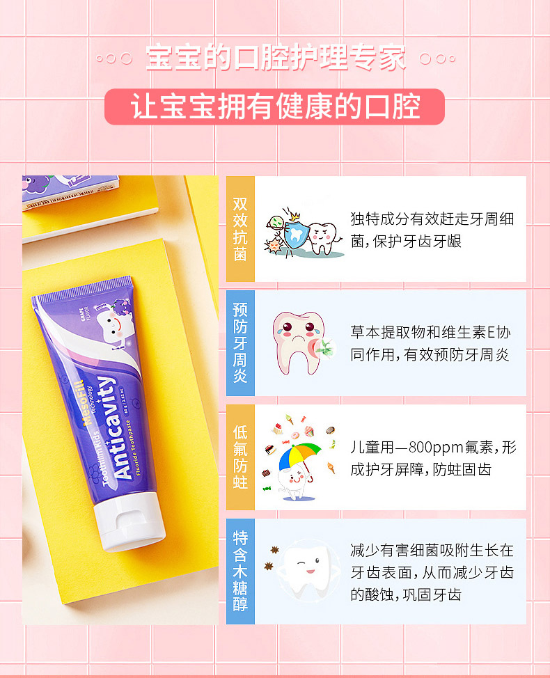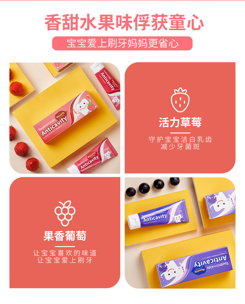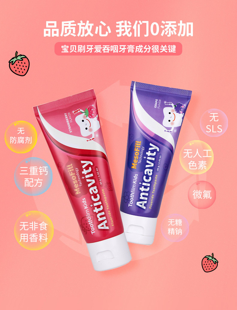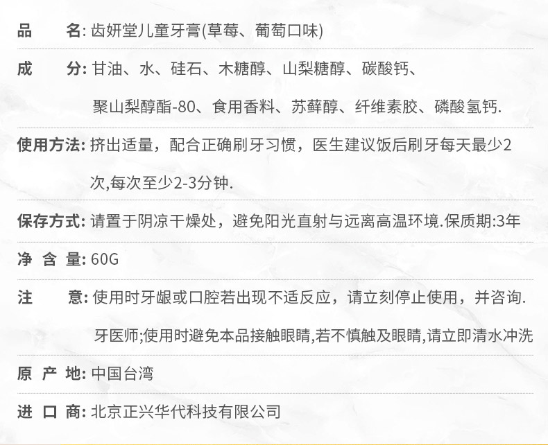 台湾齿研堂含氟儿童牙膏80g草莓葡萄口味可选【XPQ】