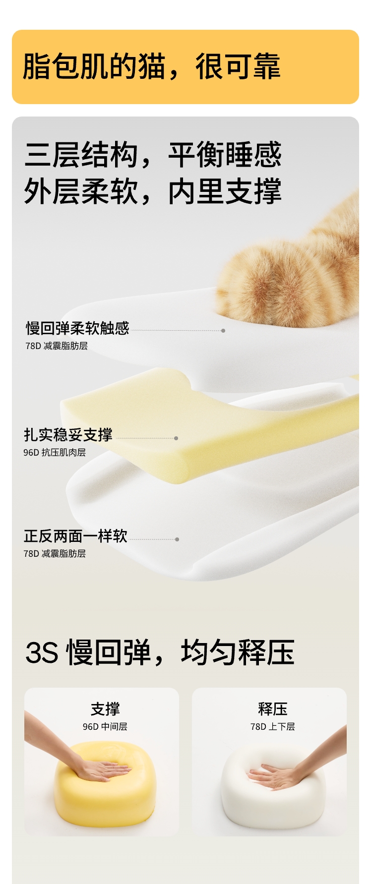 【新品】躺岛猫肚皮枕3.0记忆棉枕