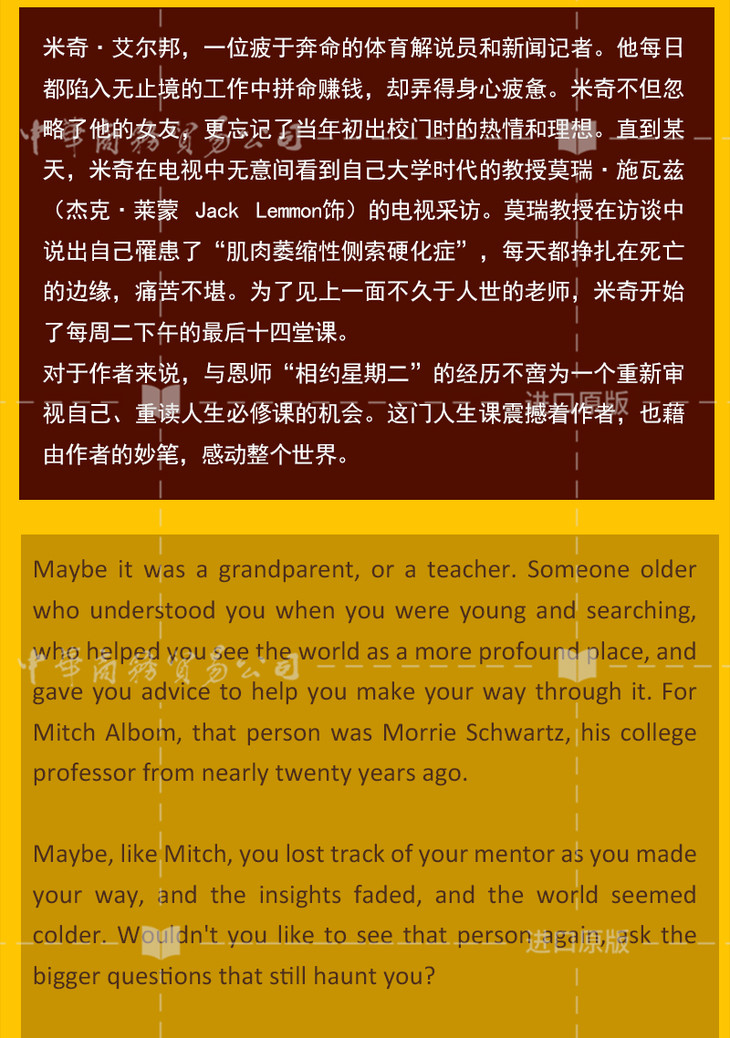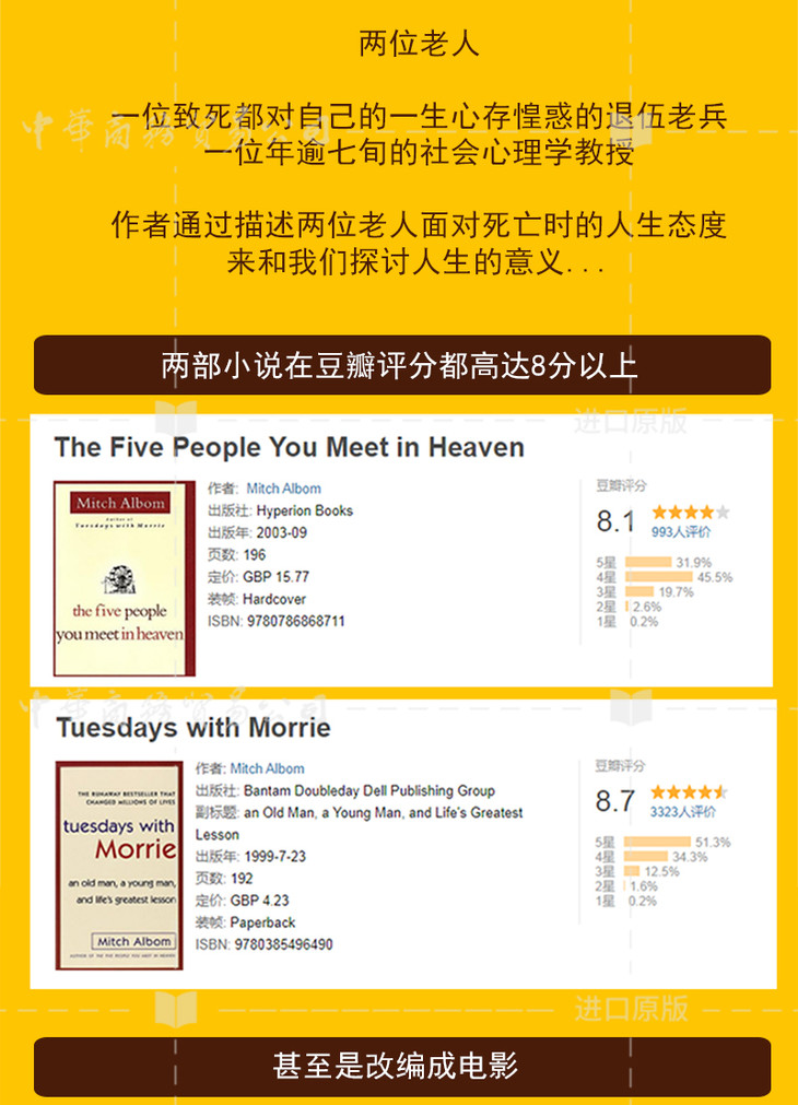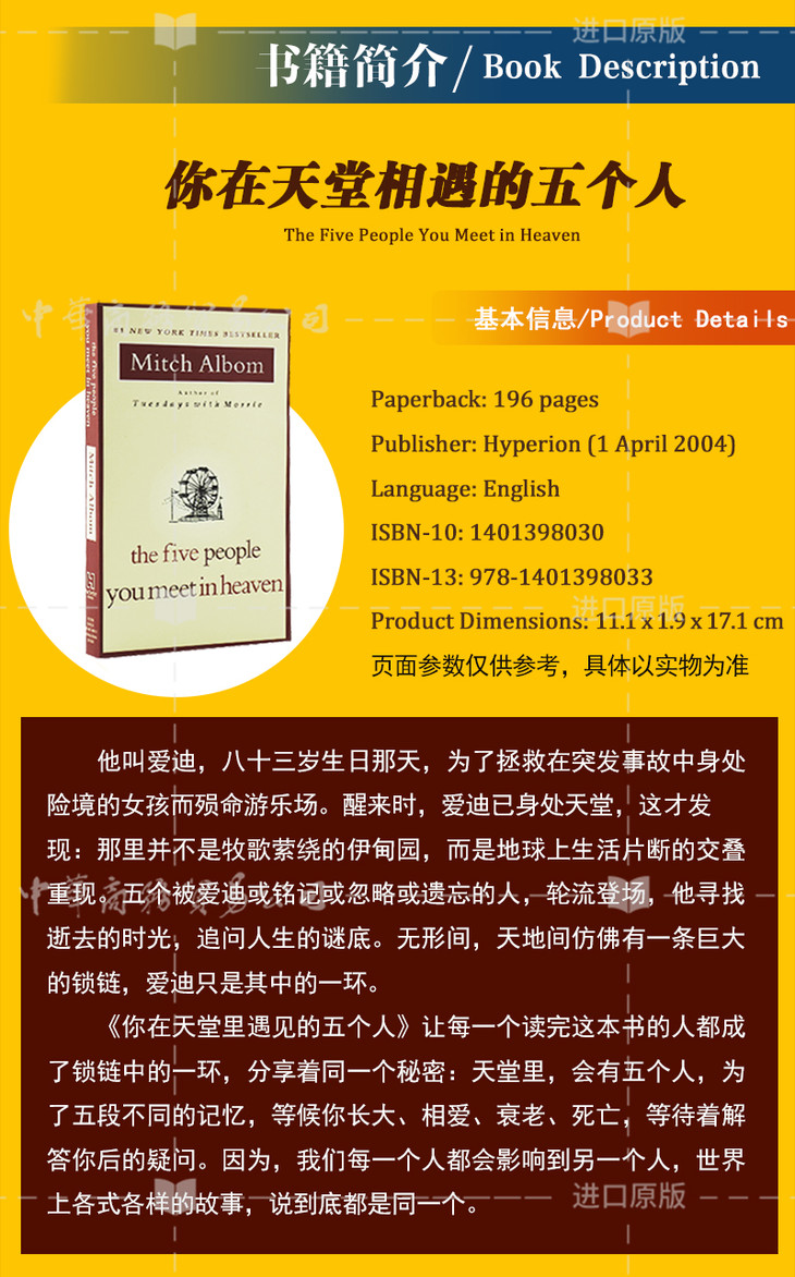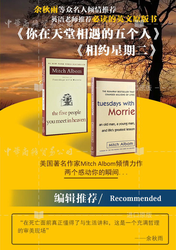 【中商原版】相约星期二+你在天堂里遇见的五个人英文原版Mitch Albom米奇作品